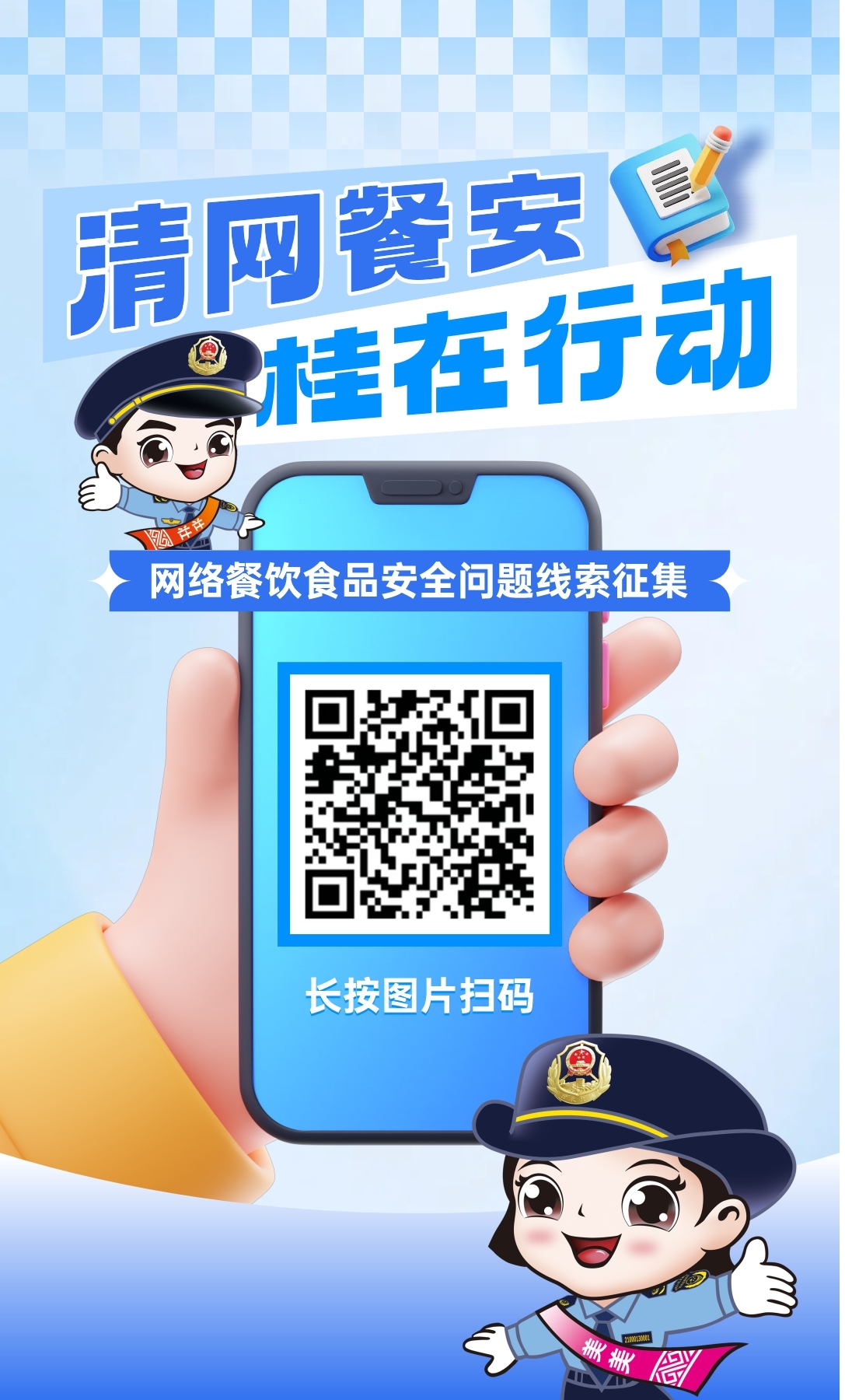 为强化网络餐饮服务食品安全监管,规范网络餐饮经营行为,保障人民群众饮食安全。从即日起,广西壮族自治区市场监督管理局向社会公开征集网络餐饮服务食品安全问题线索,鼓励网络餐饮服务送餐人员提供配送过程中发现的违法行为,现通告如下: