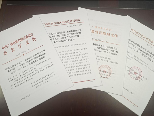 加强知识产权高效益运用,知识产权质押贷纳入“桂惠贷”产品支持范围,与金融机构建立知识产权白名单推送机制。深入推进知识产权质押融资入园惠企活动,专利商标质押为市场主体融资5.63亿元,同比增长5倍。开展“广西品牌天下行”活动,在粤港澳大湾区建立广西品牌专区专柜、专区线上销售门店、营销专员等,加强品牌推广,助推“桂品入湾”。