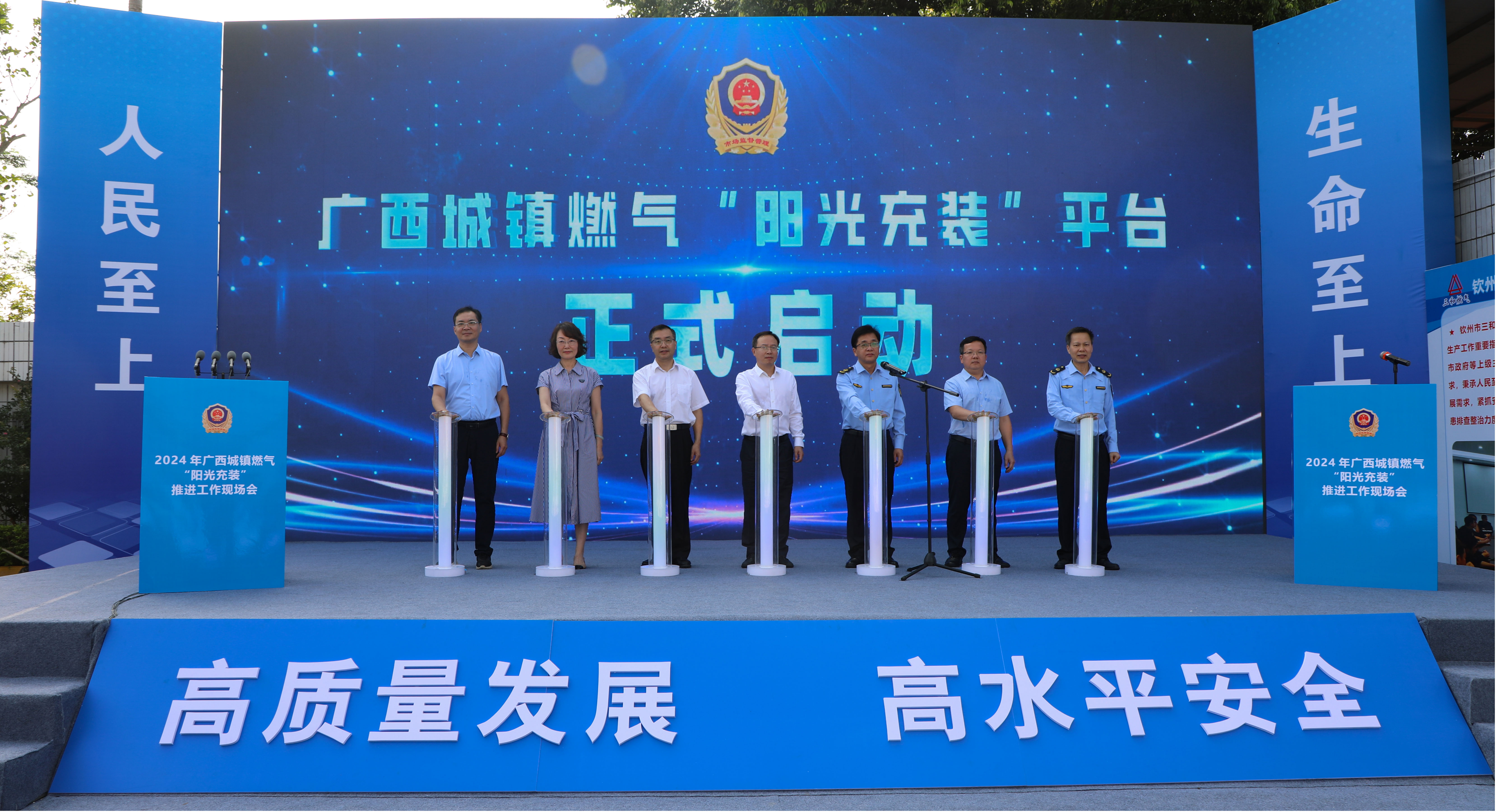 广西市场监管局党组成员、副局长黄震出席会议并通报广西特种设备安全监管和市场监管领域安全生产工作情况。市场监管总局特种设备安全监察局副局长周亮,钦州市副市长、市公安局局长龙校,自治区应急厅、自治区住房和城乡建设厅、中国—东盟自由贸易区钦州港片区管委会相关负责人出席启动仪式。广西市场监管局有关处室、中国—东盟自由贸易区钦州港片区综合执法局、14个设区市市场监管局、部分县(市、区)市场监管局主要负责人,各市特种设备安全监察工作负责人参加会议。