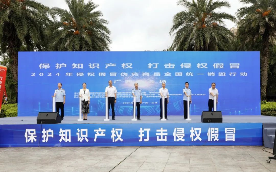 广西分会场启动仪式在玉林市文化广场举行,桂林、贺州等市同步销毁侵权假冒伪劣商品。本次统一销毁行动是广西打击侵权假冒、保护知识产权工作成果的集中展示,旨在打击侵权假冒违法犯罪行为,为推进经济高质量发展保驾护航。同时,通过真假产品展示等形式,不断提高公众识假辨假能力和自我保护意识,鼓励社会各界积极参与到打击侵权假冒行动中,形成多元共治格局。