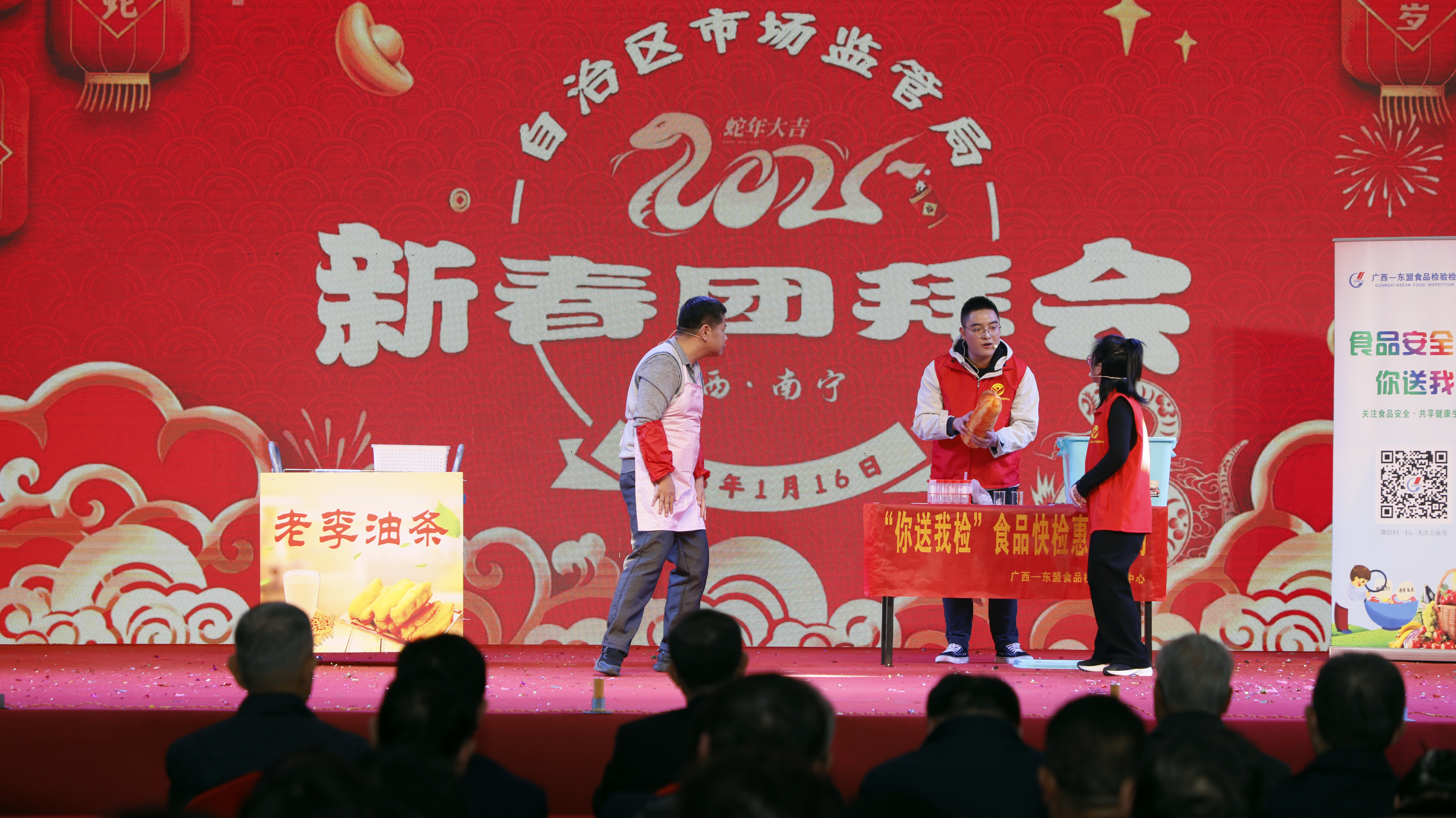团拜会上,干部职工们用自编自演的歌舞、相声、魔术、小品、乐器演奏等节目,抒发了对伟大祖国繁荣富强的赞美和热爱,展示了市场监管队伍的向心力、凝聚力和战斗力,激励广西市场监管人接续奋斗,用感恩奋进新时代、实干创新铸辉煌的澎湃激情,为奋力推进广西市场监管事业高质量发展作出新的更大贡献!现场欢声笑语不断,始终洋溢着喜庆祥和、团结向上的气氛。