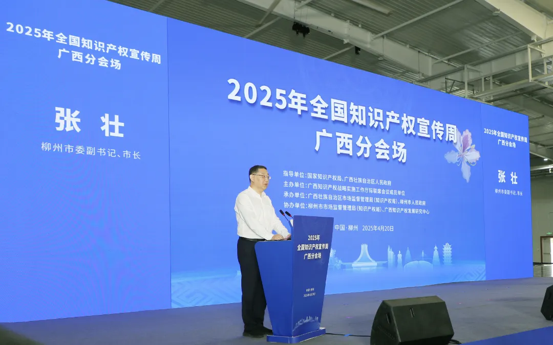 张壮在致辞中表示,柳州市将以此次活动为契机,深入实施知识产权强市战略,加强知识产权创造、运用、保护、管理、服务全链条治理,积极探索人工智能与知识产权工作的深度融合与创新发展路径,更好助力柳州推进新型工业化、发展新质生产力、建设制造强市。