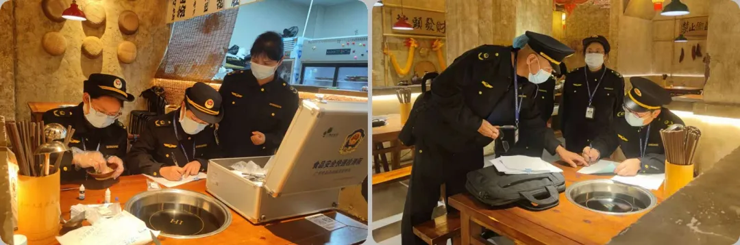 第二期“随机查餐厅”行动,执法人员联合监督代表,聚焦外卖“网红餐厅”,随机选取百色市3家餐饮单位进行检查。执法人员重点查验各经营户原料进货索票索证及查验记录,检查冷藏冷冻设备运行温度、生熟食品分类存放、食品添加剂使用管理等情况,并对蔬菜农残、餐饮具清洁度开展快速检测。针对检查发现的问题,执法人员当场下达《责令改正通知书》,责令相关餐饮单位立即或限期整改,后续将跟踪复查,确保整改落实到位。