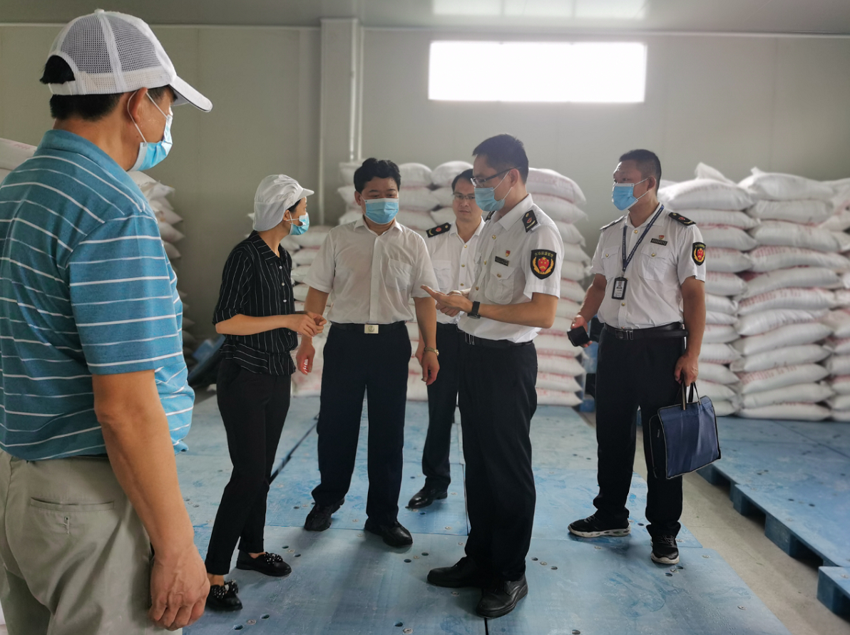 ▲市场监管执法人员对食品生产企业自查问题整改情况进行核查