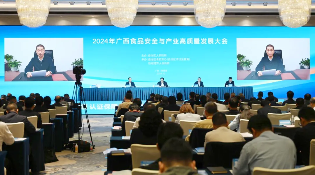 12月3日,2024年广西食品安全与产业高质量发展大会在防城港市召开。大会深入学习贯彻党的二十届三中全会精神和习近平总书记关于广西工作论述的重要要求,全面贯彻自治区党委、政府关于食品安全工作和工业振兴决策部署,举办了系列活动,持续推动广西食品产业高质量发展。自治区副主席许显辉出席大会并讲话,市场监管总局食品生产司司长樊红平作视频致辞,自治区食药安办主任、自治区市场监管局党组书记、局长李泽通报相关情况,防城港市市长邱明宏致辞并介绍防城港市食品安全与产业高质量发展情况。