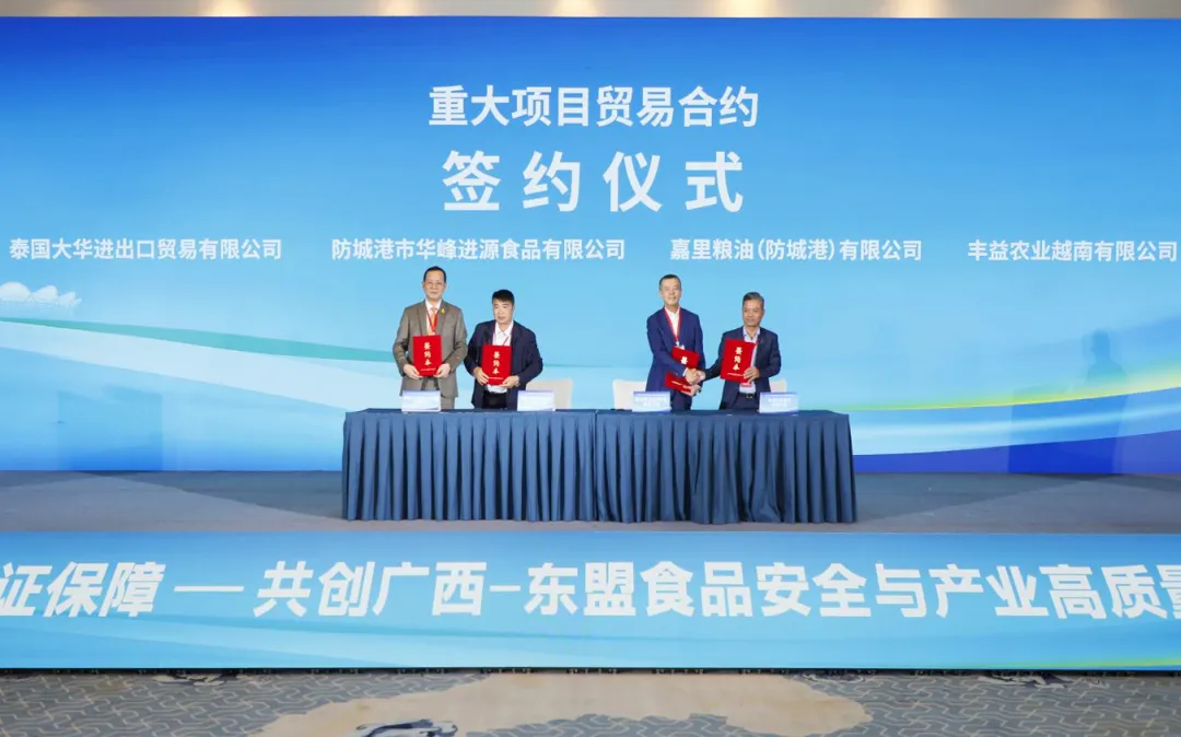 大会举行市场监管总局技术创新中心(天然香料香精)、粤港澳大湾区认证促进中心广西分中心揭牌仪式。自治区市场监管局发布了最新食品相关地方标准。与亚洲理工学院、江南大学签订建立中国—东盟食品安全合作谅解备忘录;与防城港市人民政府签订高质量发展合作会商议定书。防城港国际医学开放试验区与数家特殊食品生产企业签订项目投资协议。一批国内企业与越南等东盟国家企业签订重大项目贸易合约。此外,与会食品相关企业共同发布标准化和“湾区认证”行动倡议。
