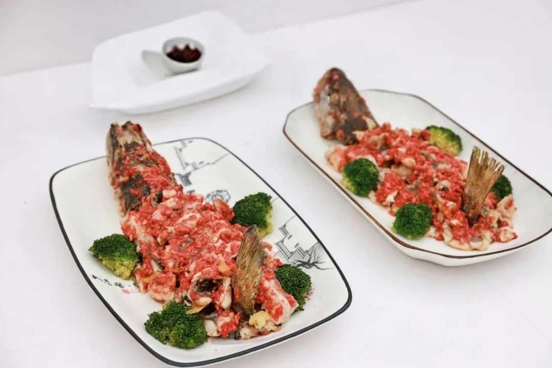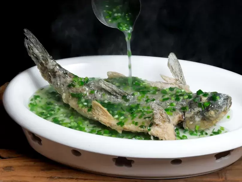 活鱼淋滚烫葱油,骨刺酥化如粤曲般婉转,尽显两广交融滋味。
