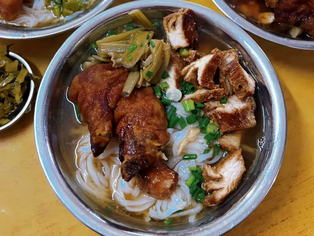 猪脚炖至皮肉酥烂,外酥里嫩,粉吸足汤汁咸香适口。