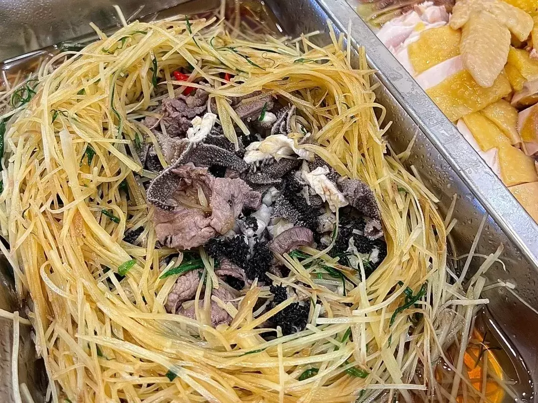红树林海鸭白灼装盘,蘸沙姜酱油激出咸鲜海韵,诠释京族“大道至简”食理。