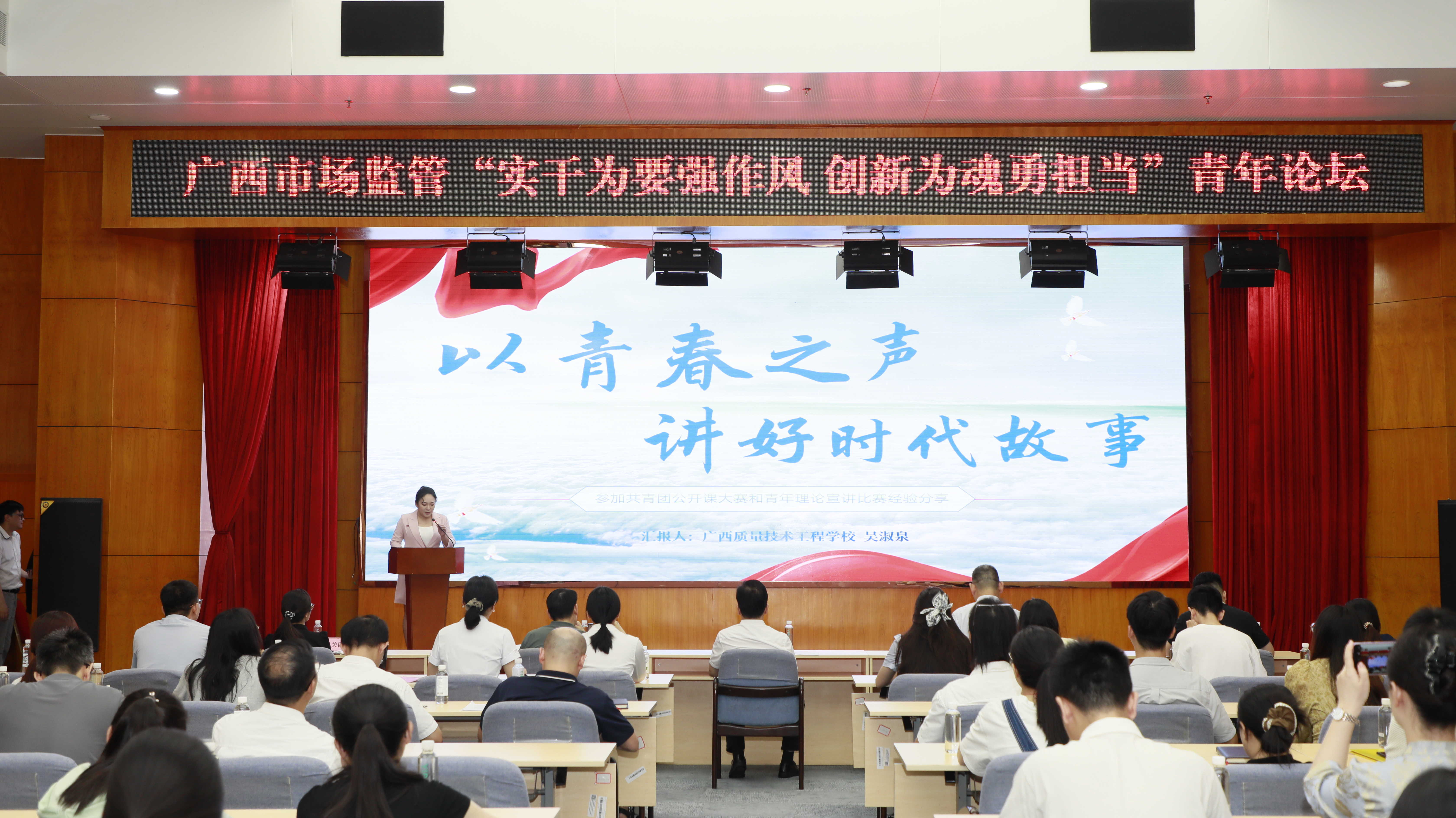 自治区市场监管局机关党委、广西质检院有关负责同志,局机关青年理论学习小组成员,各基层团组织团员、团干部代表,以及局机关“扬帆计划”实习大学生共计140余人参加论坛。