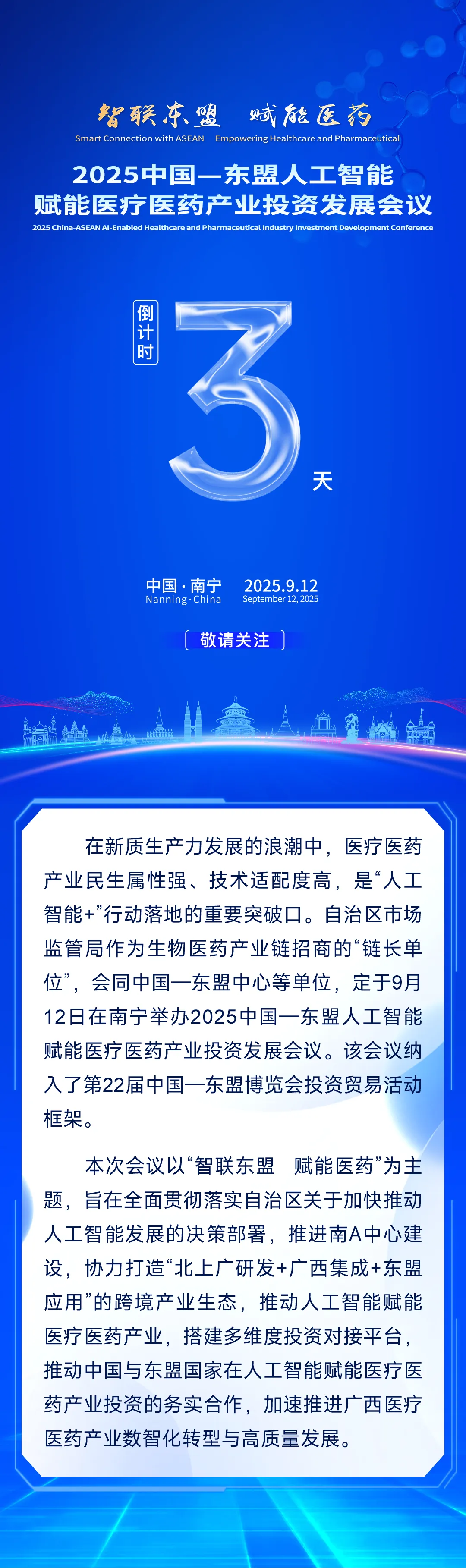 2025中国—东盟人工智能赋能医疗医药产业投资发展会议 倒计时3天!
