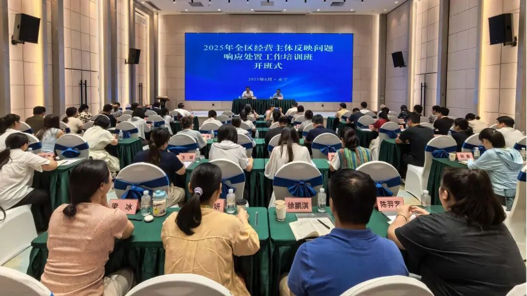 为进一步贯彻落实自治区党委、政府关于健全经营主体反映问题响应处置机制的工作部署,持续推进“营商广西·桂在便利”服务品牌建设,近日,自治区经营主体反映问题响应处置工作专班办公室在南宁举办全区经营主体反映问题响应处置工作培训班。