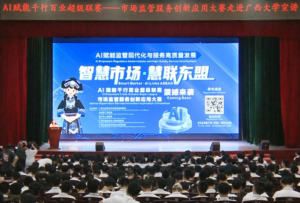近日,“AI赋能千行百业超级联赛—市场监管服务创新应用大赛”走进高校宣讲活动在广西大学进行。