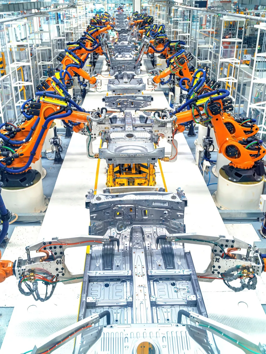 现代化的汽车制造厂焊接装配线。(图/视觉中国)