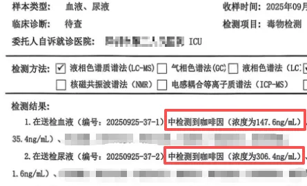 检查发现男子尿液中咖啡因浓度高于血液,体内残留大量未被代谢的咖啡因。经诊断,男子为过量饮用功能性饮料导致的咖啡因中毒。