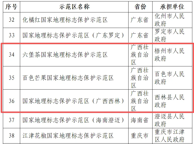 近日,国家知识产权局公布54个新批准成立的国家地理标志保护示范区名单,“六堡茶”“百色芒果”“广西西林”等3个国家地理标志保护示范区成功入选,标志着广西在地理标志产品保护与特色产业发展方面迈入标准化、规范化的新阶段,为区域特色产业升级提供了有力支撑。