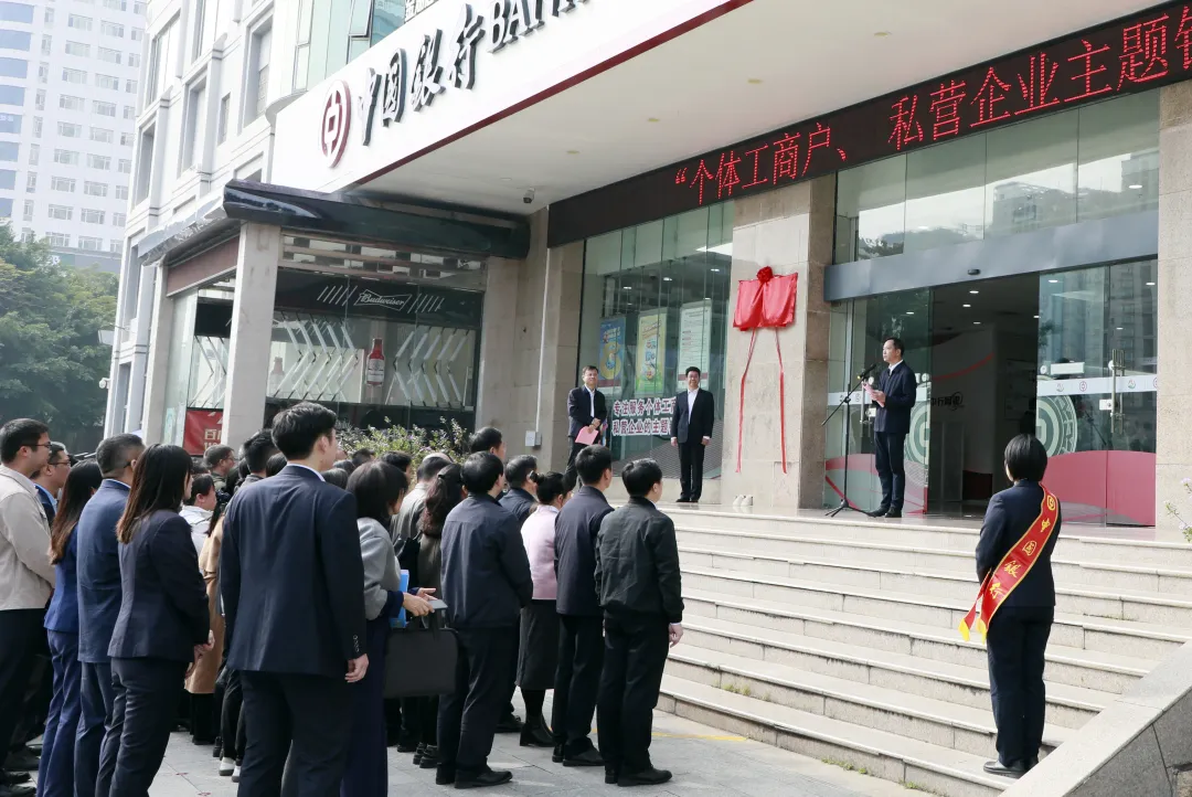 自治区党委金融办、自治区市场监管局有关处室负责同志,各市市场监管局、青秀区市场监管局负责人和有关科室负责同志,中国银行广西区分行、中国银行南宁五象广场支行代表,各市“个私主题银行”网点业务骨干共50余人参加揭牌仪式。