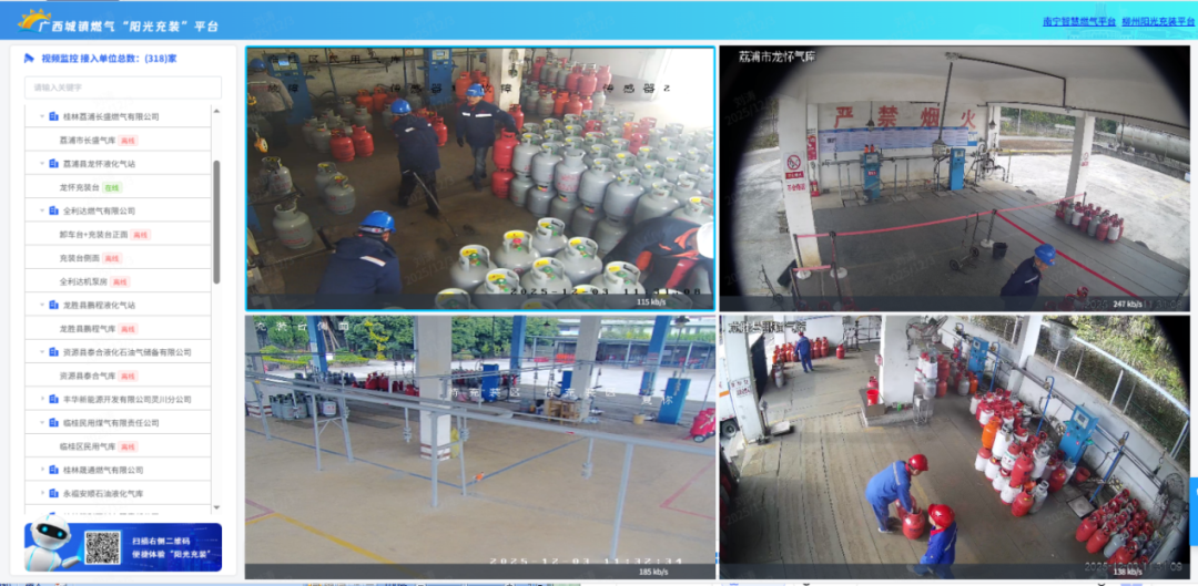 广西率先实现液化石油气瓶“阳光充装”视频监控上线率100%,让每一瓶气的充装过程“透明可见”,成为全国首个全量接入市场监管总局非现场监管平台的省份。广西市场监管部门将全区1381万只气瓶信息纳入追溯系统,实现对气瓶从生产、充装到检验、报废的全生命周期管理,扫码“一键知安全”,让群众查得省心、用得安心,气瓶全链条信息化管理位居全国前两位。