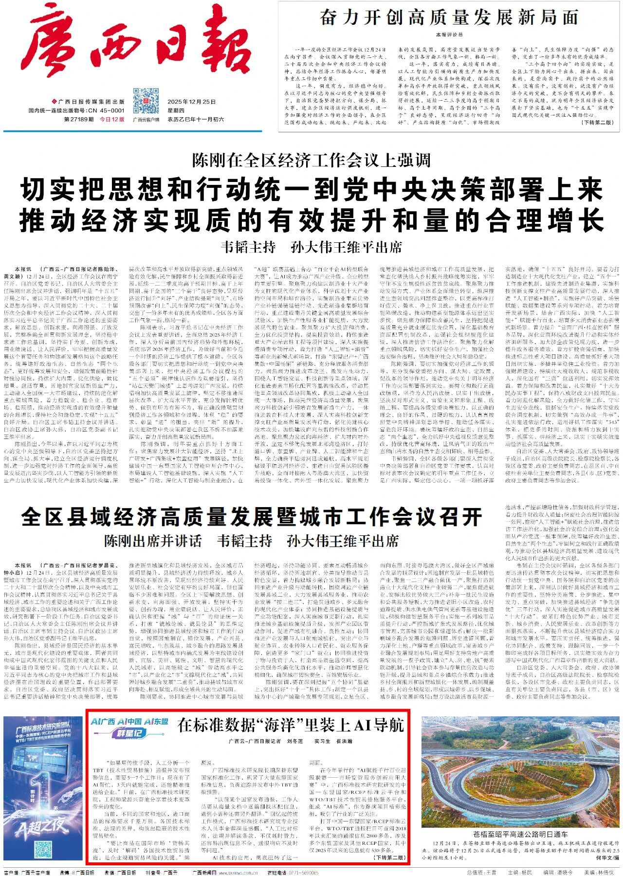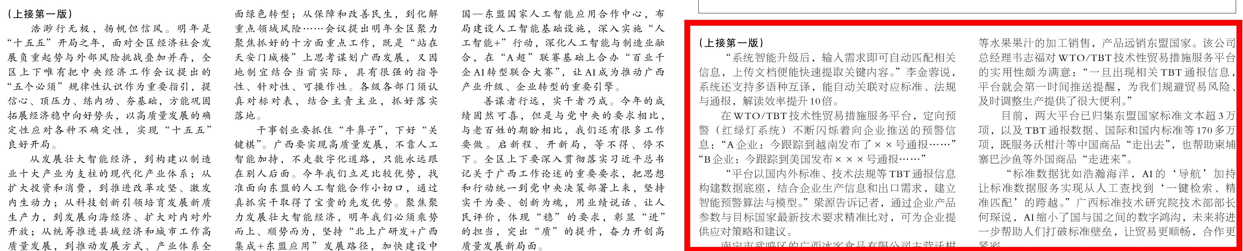在今年举行的“AI赋能千行百业超级联赛——市场监管服务创新应用大赛”中,广西标准技术研究院研发的中国—东盟国家/RCEP标准云平台和WTO/TBT技术性贸易措施服务平台,组成“AI标准”,作为路演项目精彩亮相,吸引了行业的广泛关注。