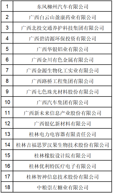 国家知识产权示范企业创建对象名单(广西入选企业)