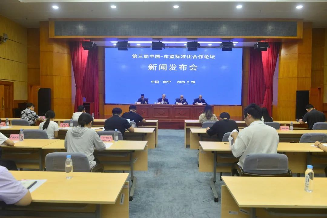 9月28日,第三届中国—东盟标准化合作论坛承办方召开新闻发布会,通报论坛筹备情况并宣布论坛将于10月12日在广西柳州市举行。广西壮族自治区市场监督管理局党组成员、总工程师李暄介绍论坛相关情况。