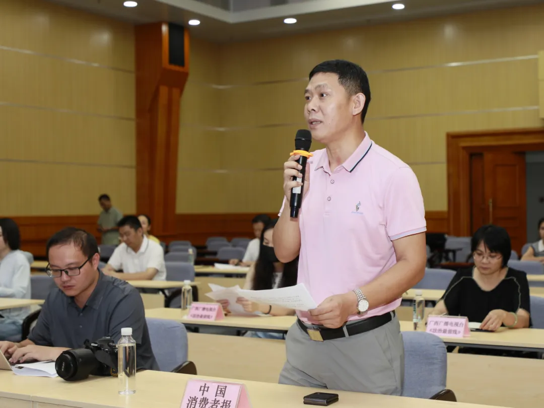 广西市场监管局于2025年6月16日举行央视3·15晚会曝光问题广西市场监管部门后续处置工作新闻发布会。发布会邀请自治区市场监管局副局长杨积军,自治区市场监管局二级巡视员、综合执法局局长罗耀敏,自治区市场监管局质量监管处处长刘铁辉,自治区市场监管局认证检测处处长温萍,广西产品质量检验研究院副院长莫百春,通报央视3·15晚会曝光问题广西市场监管部门后续处置工作情况并回答记者提问。发布会由自治区市场监管局宣传和对外交流合作处处长车亚焕主持。