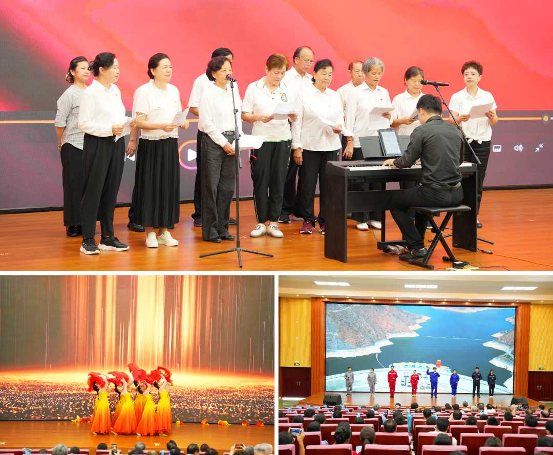 ▲老党员们现场表演歌颂祖国文艺节目并观看学院师生表演