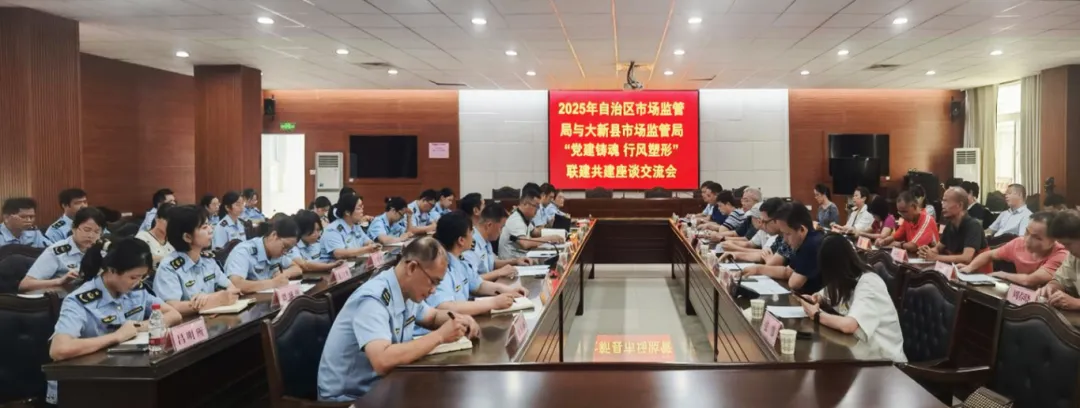 近日,广西市场监管局机关党委与大新县委组织部、大新县市场监管局联合举办“党建铸魂·行风塑形”联建共建座谈交流会,双方就推动党建与业务深度融合、巩固行风建设成果等方面内容进行了深入交流。