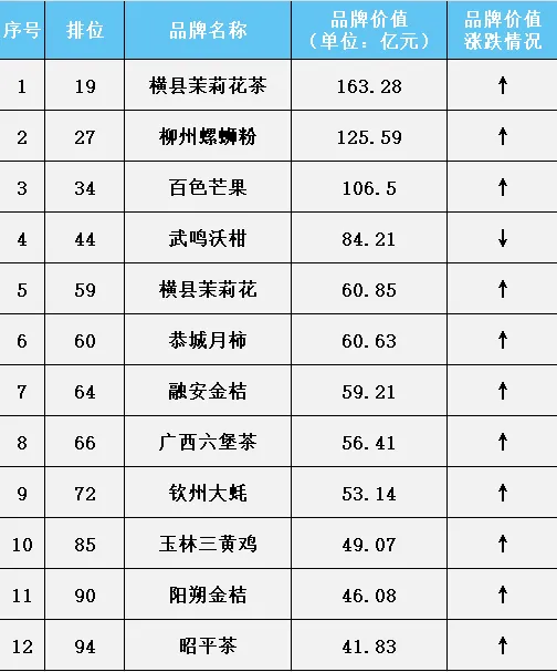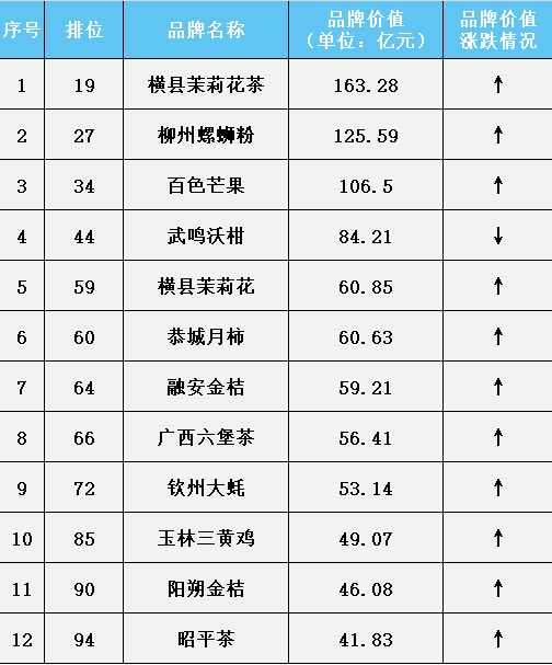广西地理标志12个入围中国品牌价值评价区域品牌100强情况