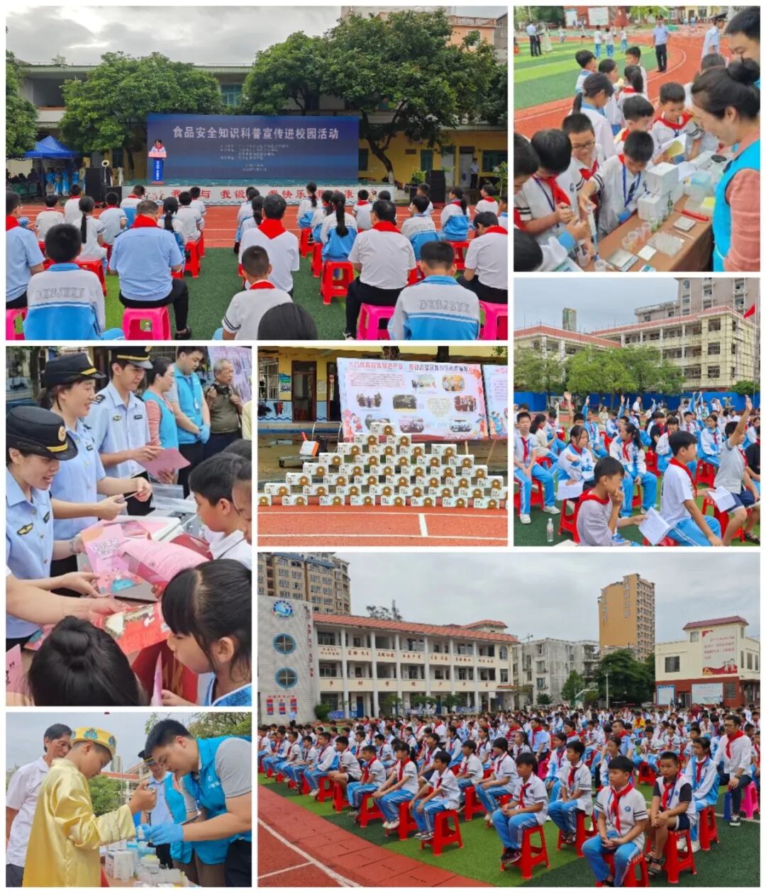 活动当天,还开展了食品安全“你点我检 服务惠民生”进校园活动,通过“食安课堂+有奖竞答”“问卷调查+现场交流”“实地抽检+现场演示”等形式,进一步强化校园食品安全教育,鼓励广大师生和家长积极参与食品安全监管,倡议大家从食品安全旁观者变成食品安全参与者、见证者和监督者,共同守护校园食品安全。爱心企业、防城港市市场监管局向学校捐赠了一批学生饮用奶、书籍和学习用品等,东兴市京族学校的学生们表演了具有京族特色文艺节目。
