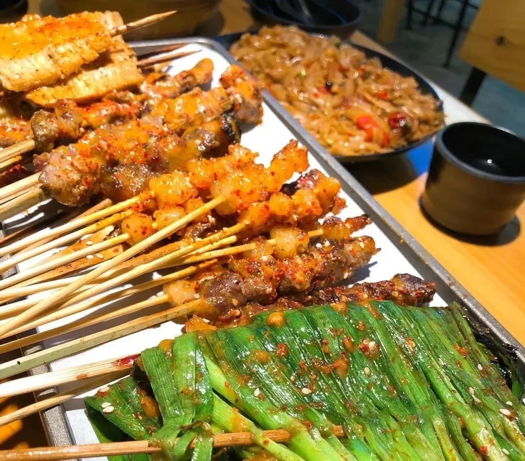 夜幕降临,宜州的街头巷尾弥漫着浓浓的烟火气息,烧烤摊成为这座城市夜晚生动的角落。摊位上,各类食材排列得错落有致,从鲜嫩的牛肉到弹牙的掌中宝,从水灵的韭菜到清甜的玉米,每一样都散发着诱人的待烤香气。