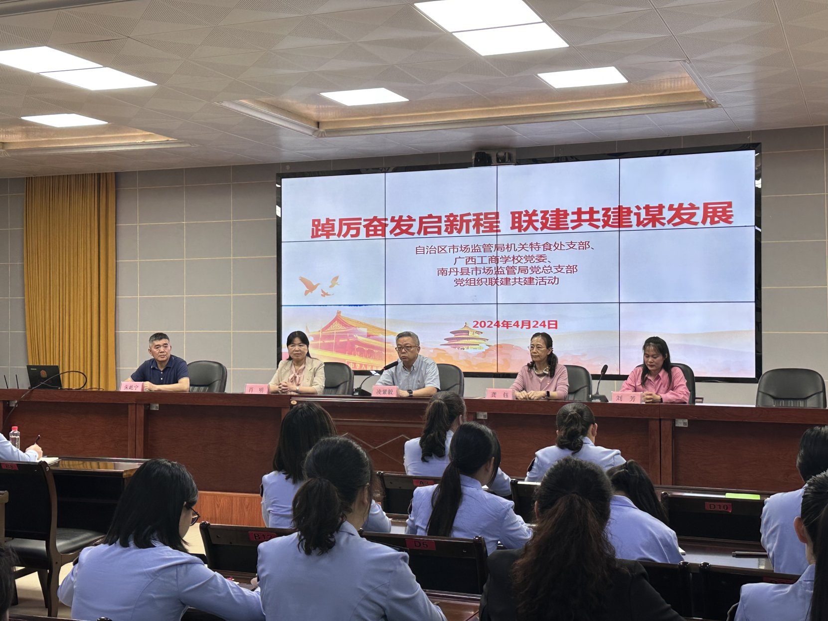 4月24日,自治区市场监管局机关特食处党支部联合广西工商学校党委、南丹县市场监管局党总支部,在南丹县开展以“行动学习+支部联建”助推基层食品安全监管能力提升活动。