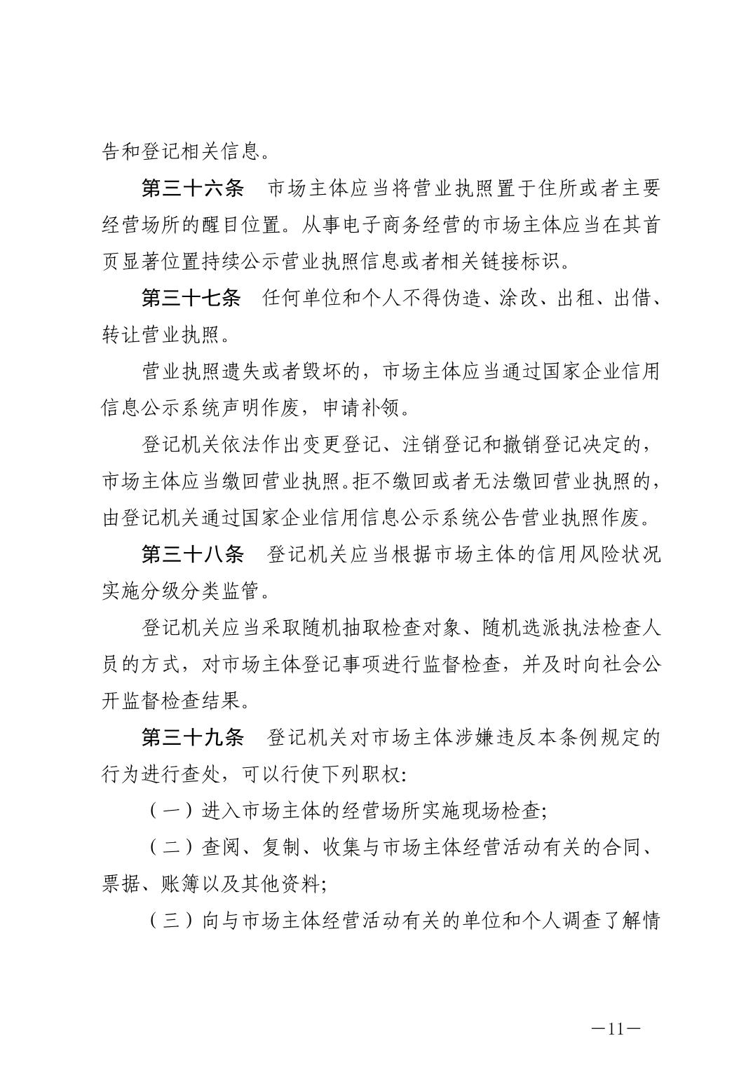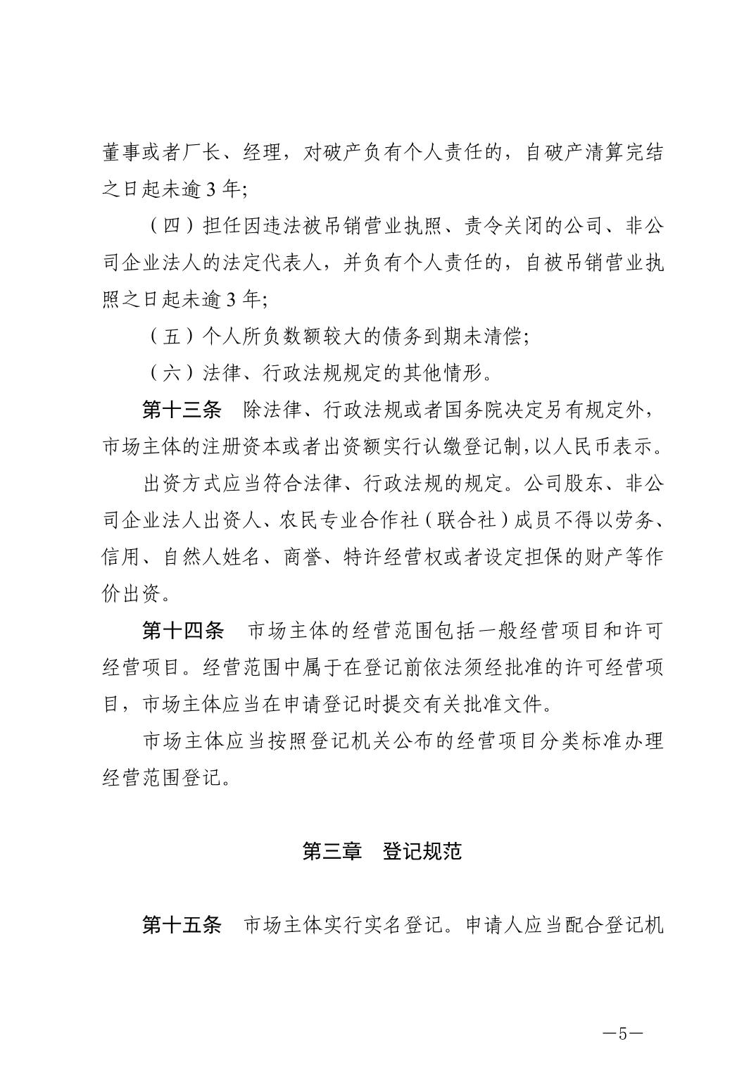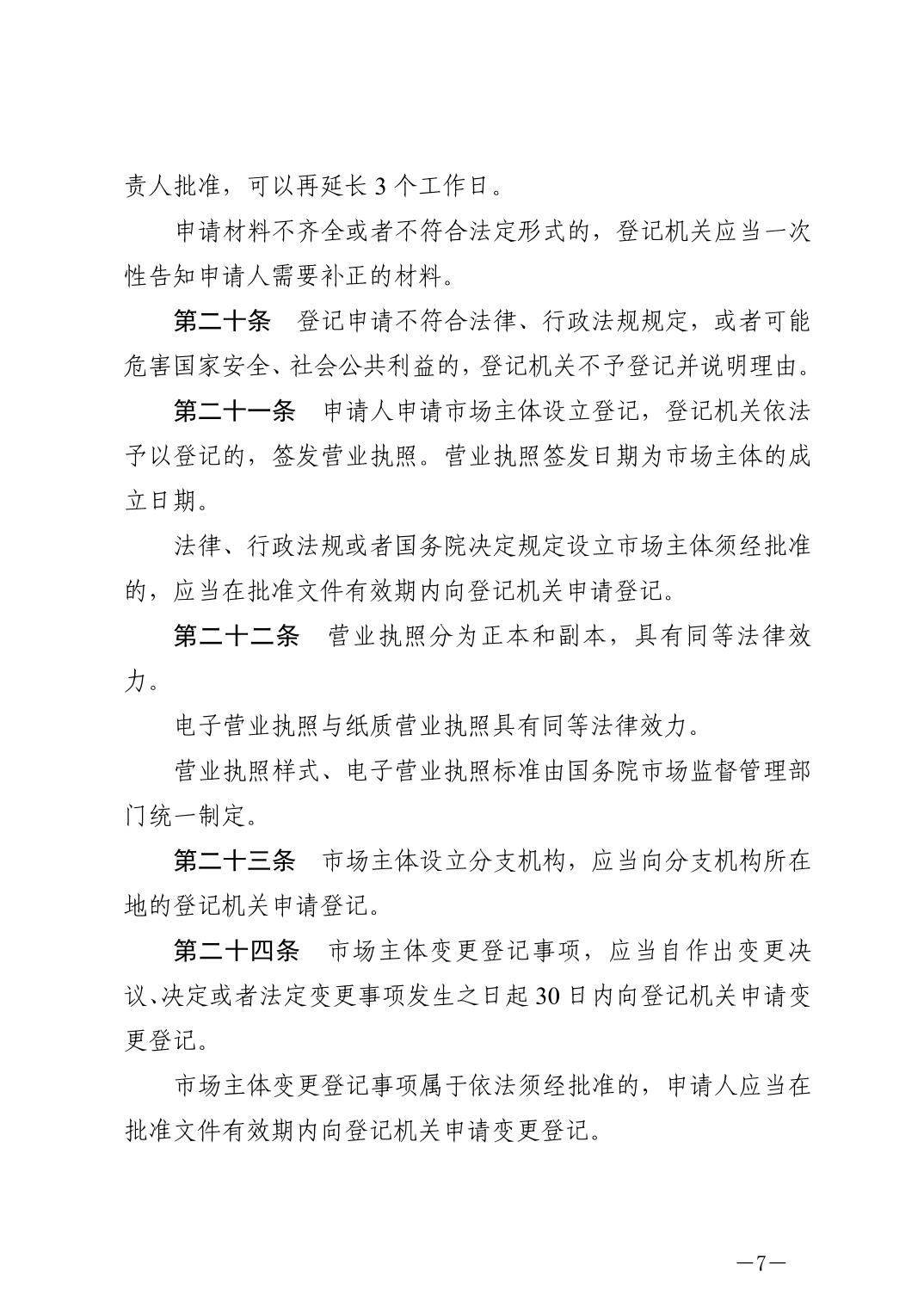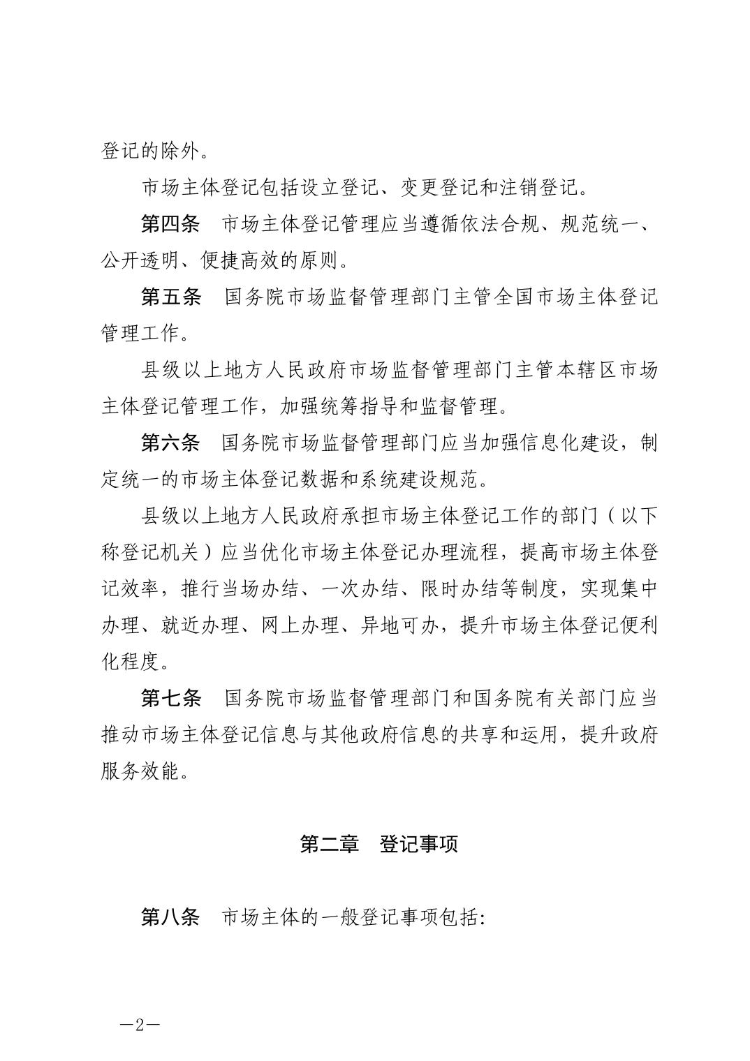 中华人民共和国市场主体登记管理条例
