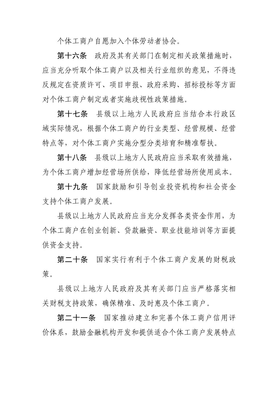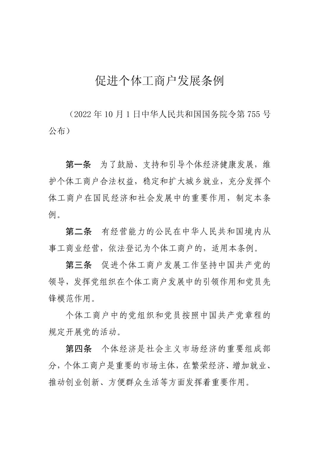 促进个体工商户发展条例