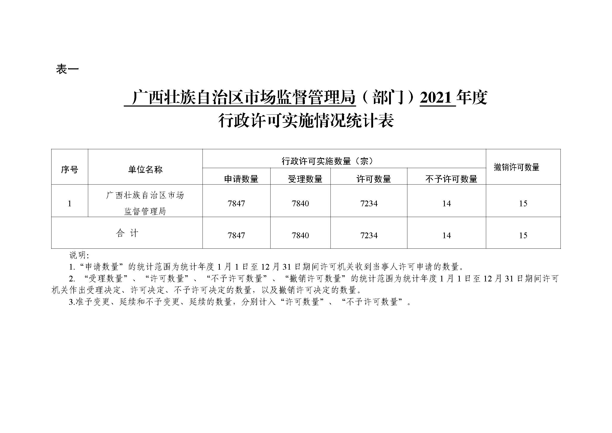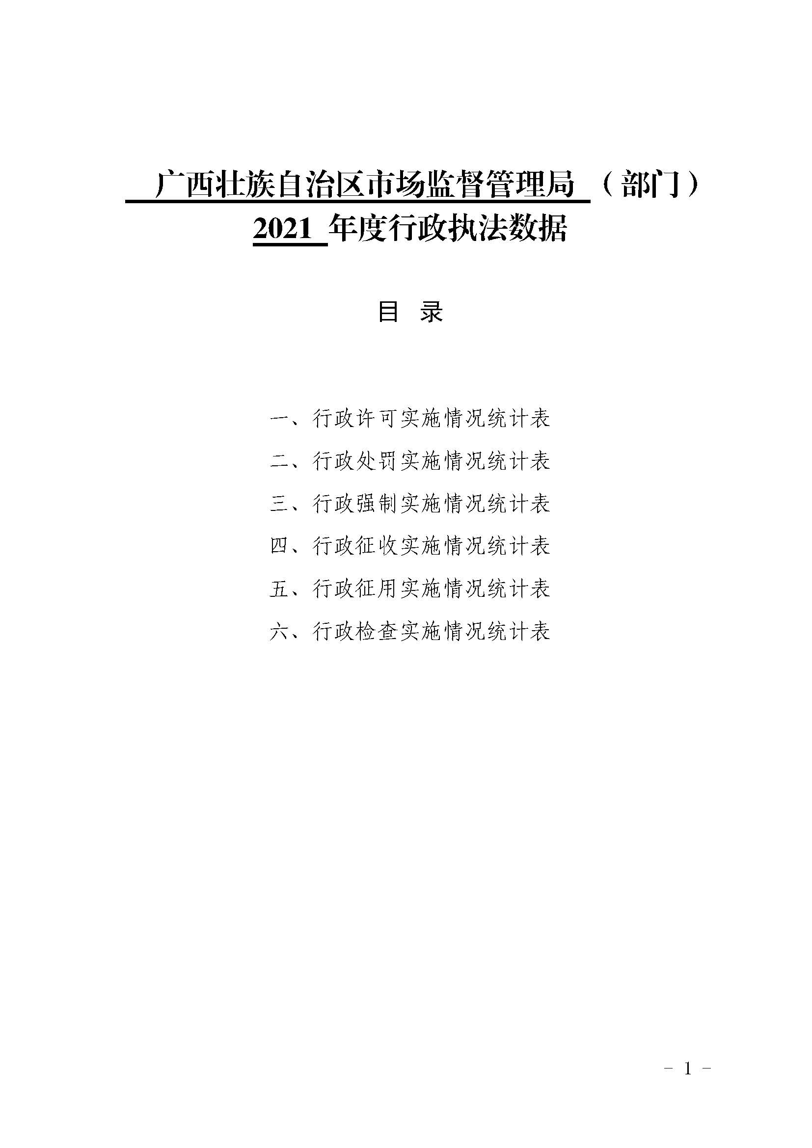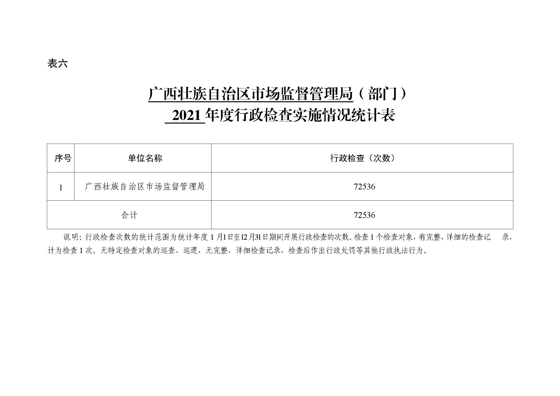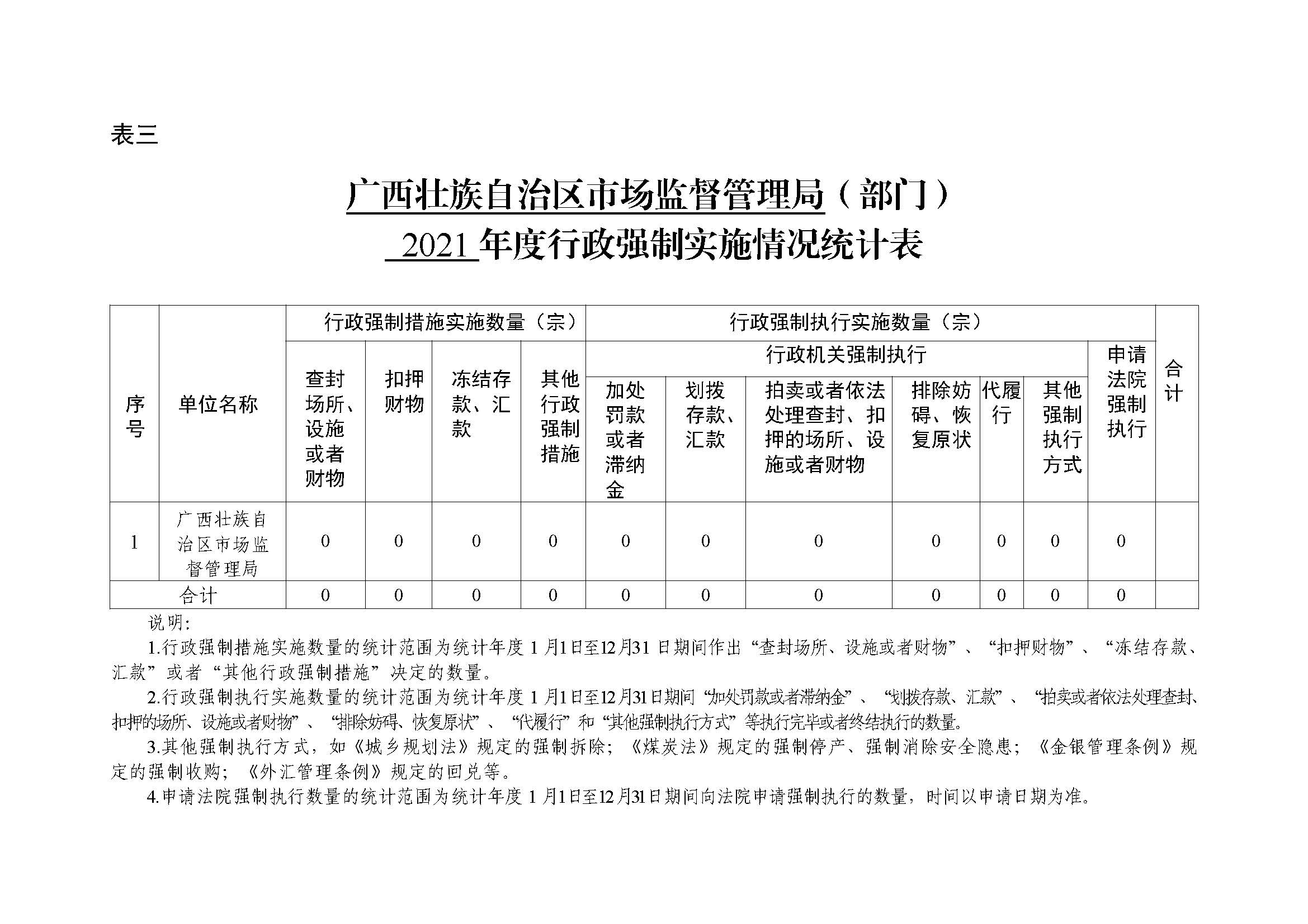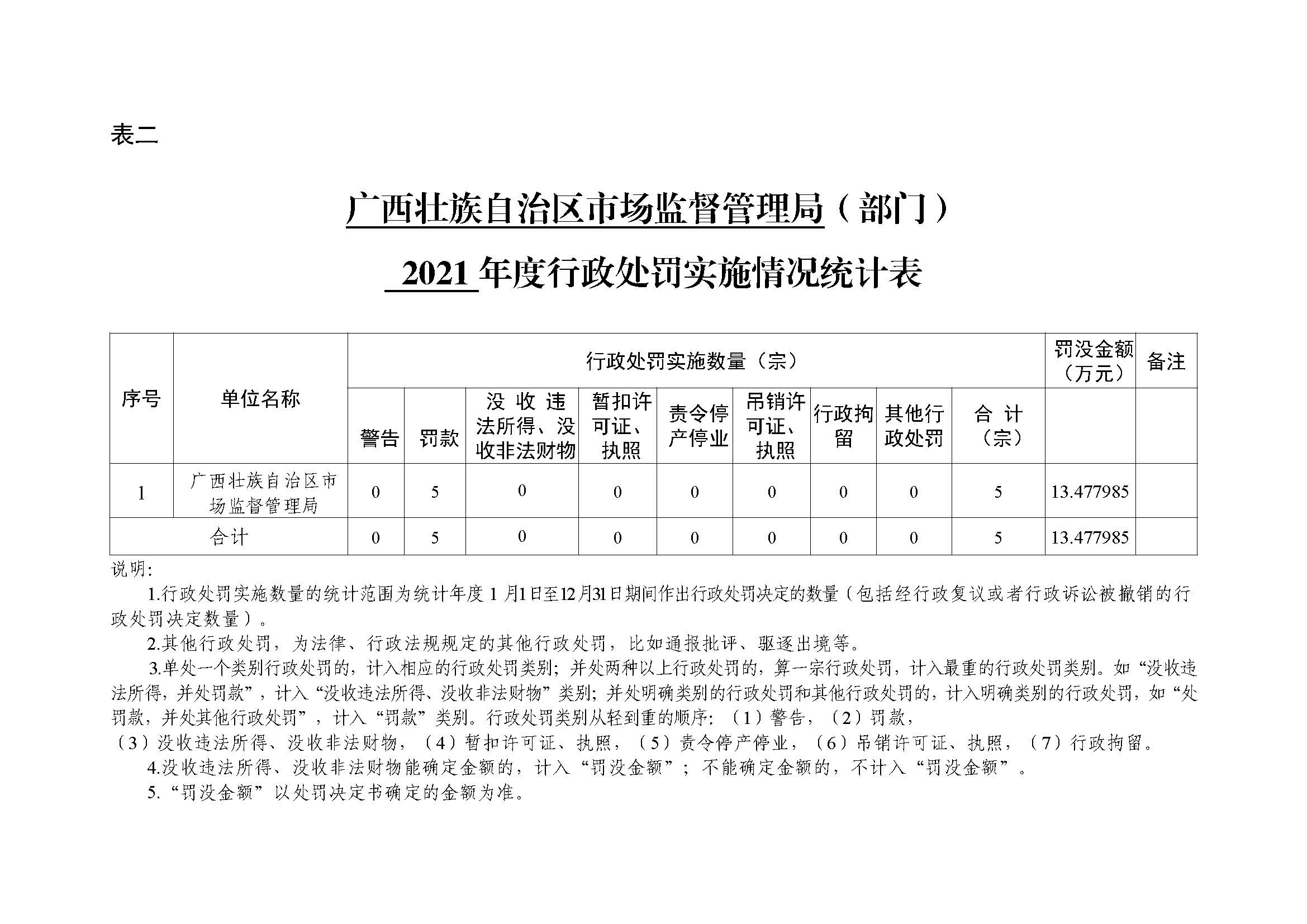 广西壮族自治区市场监督管理局2021年度行政执法统计年报表