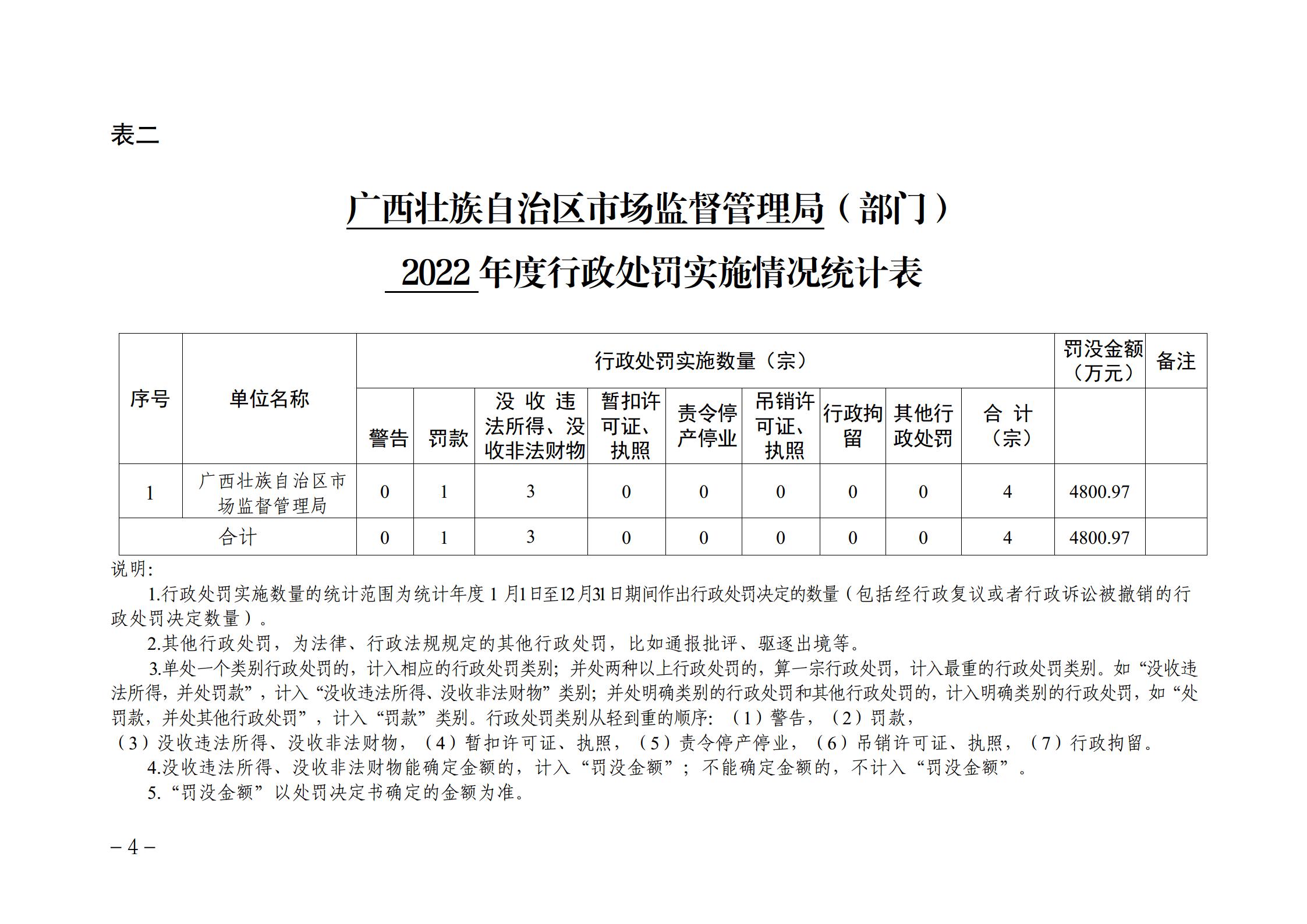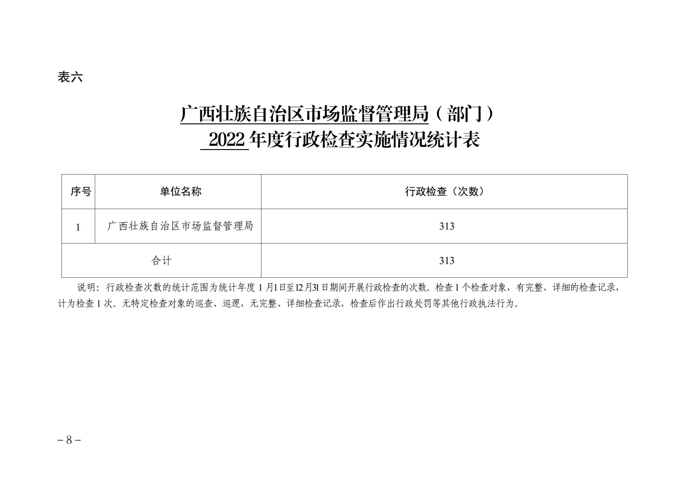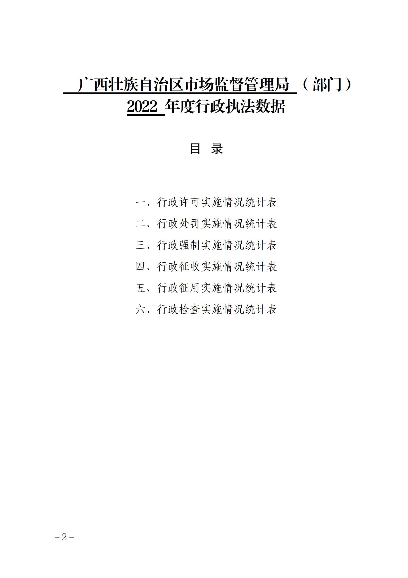 广西壮族自治区市场监督管理局 (部门)2022 年度行政执法数据