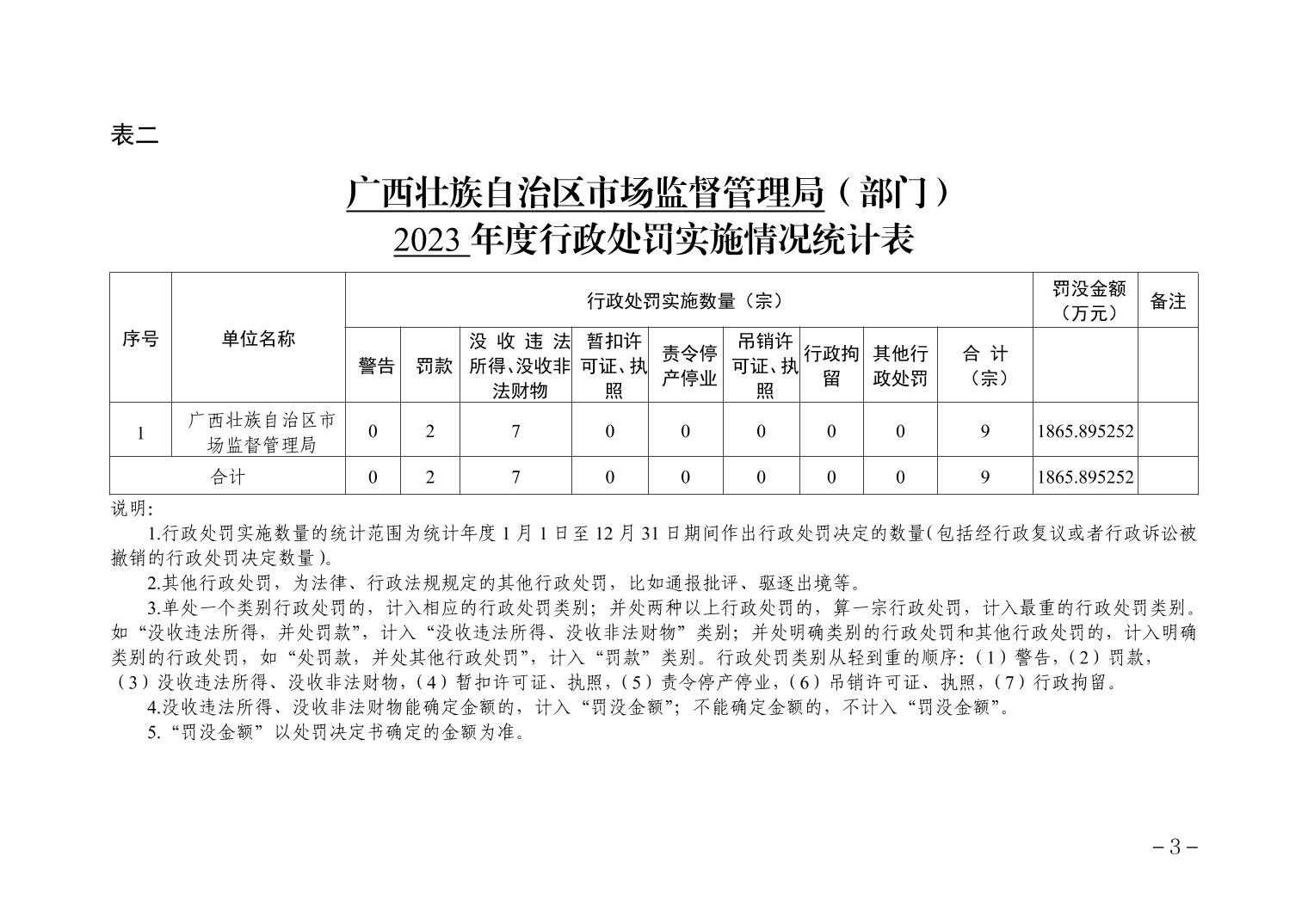 广西壮族自治区市场监督管理局 (部门)2023年度行政执法数据
