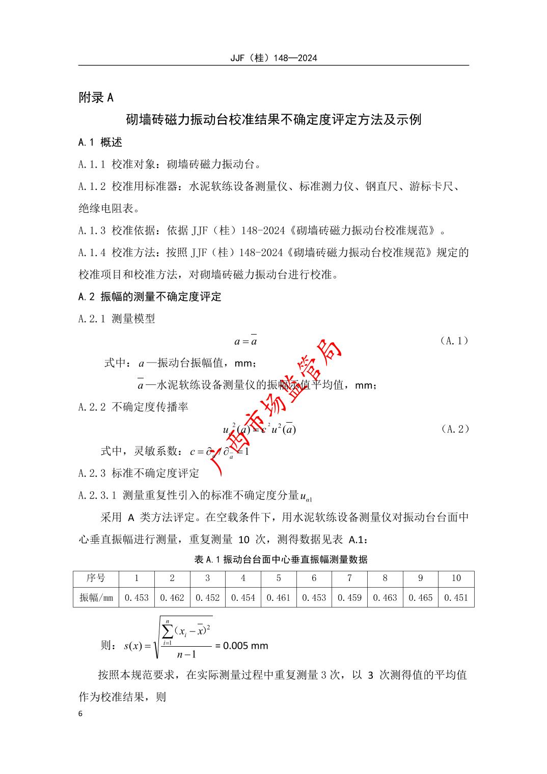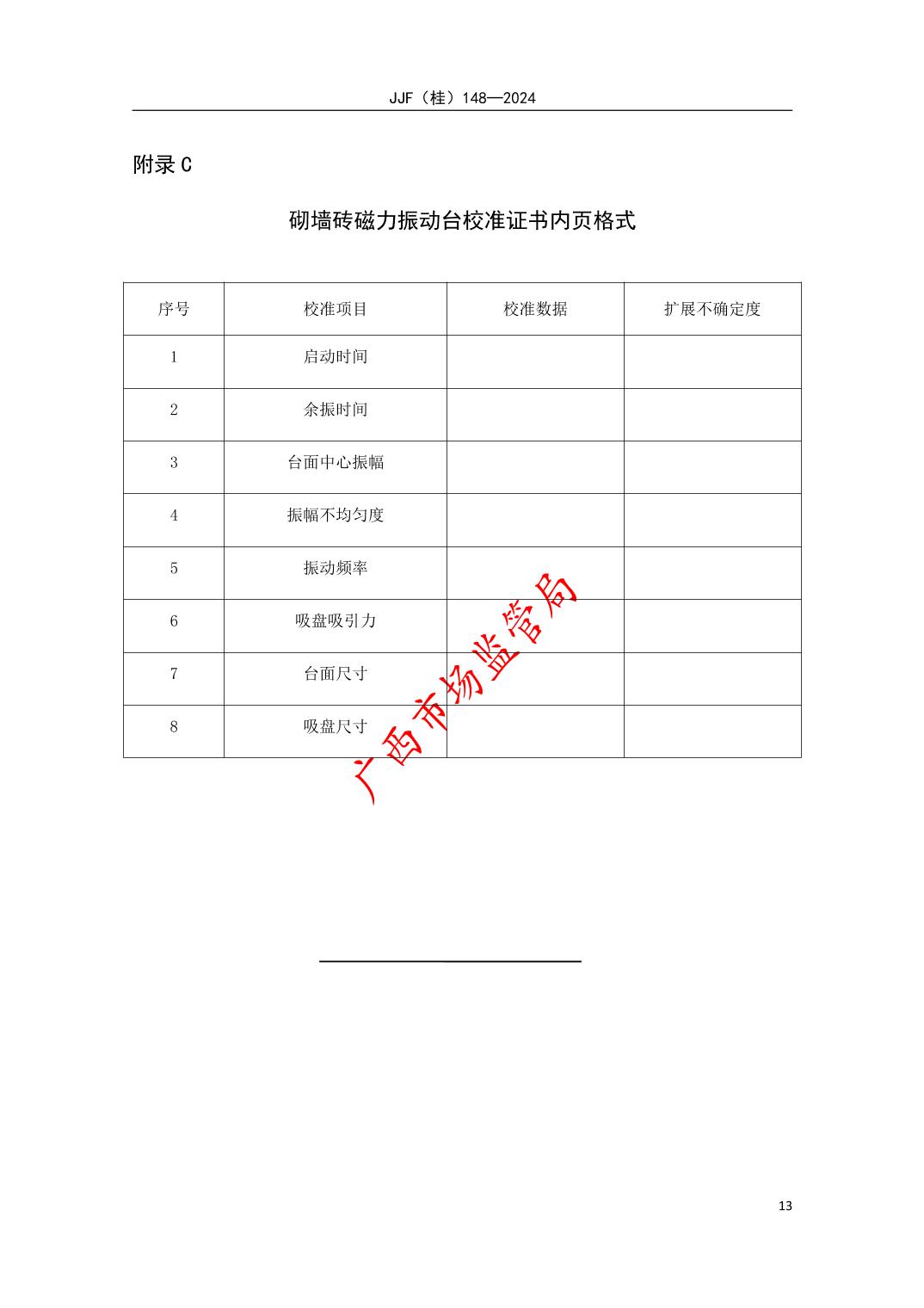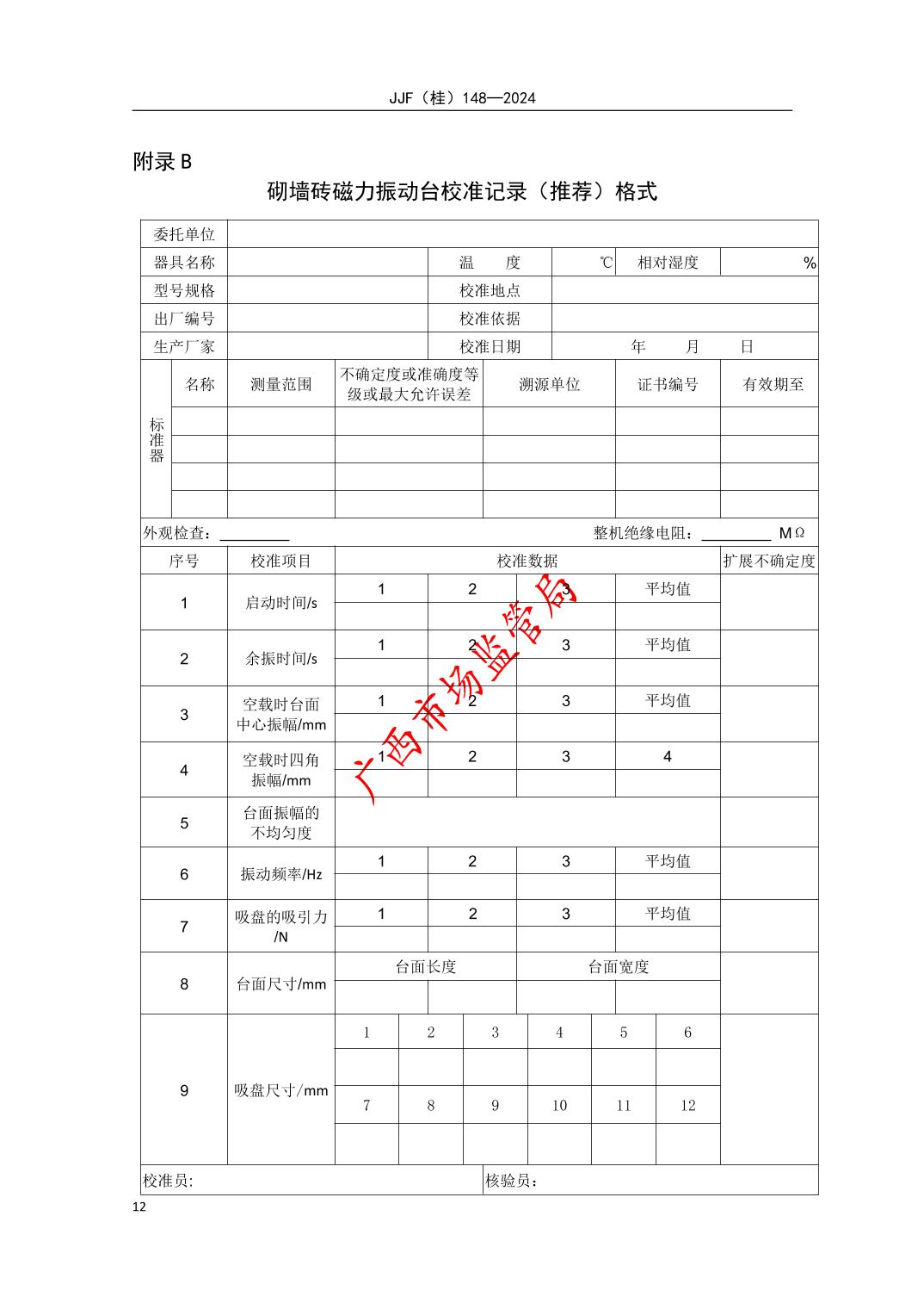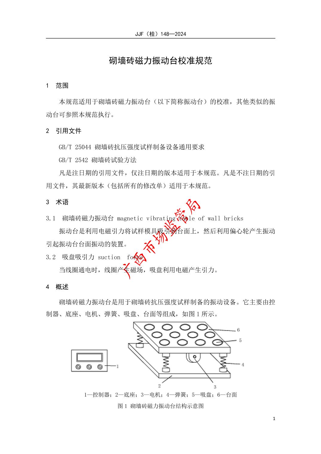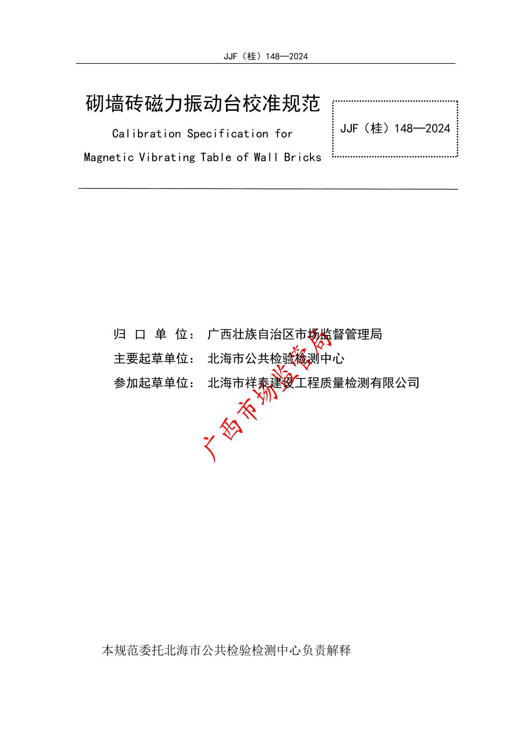 JJF(桂)148-2024砌墙砖磁力振动台校准规范