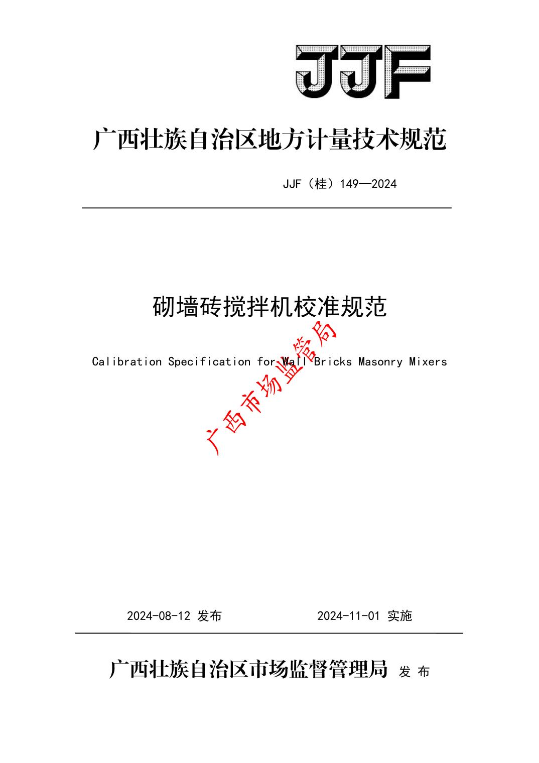 JJF(桂)149─2024 砌墙砖搅拌机校准规范.pdf