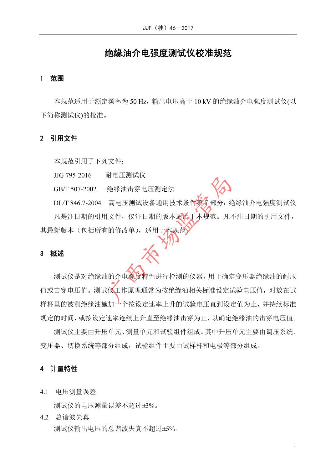 JJF (桂)46 —2017绝缘油介电强度测试仪校准规范(印刷版)(1).pdf