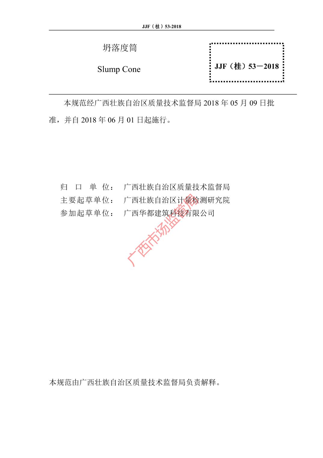 JJF(桂)53-2018坍落度筒校准规范.pdf