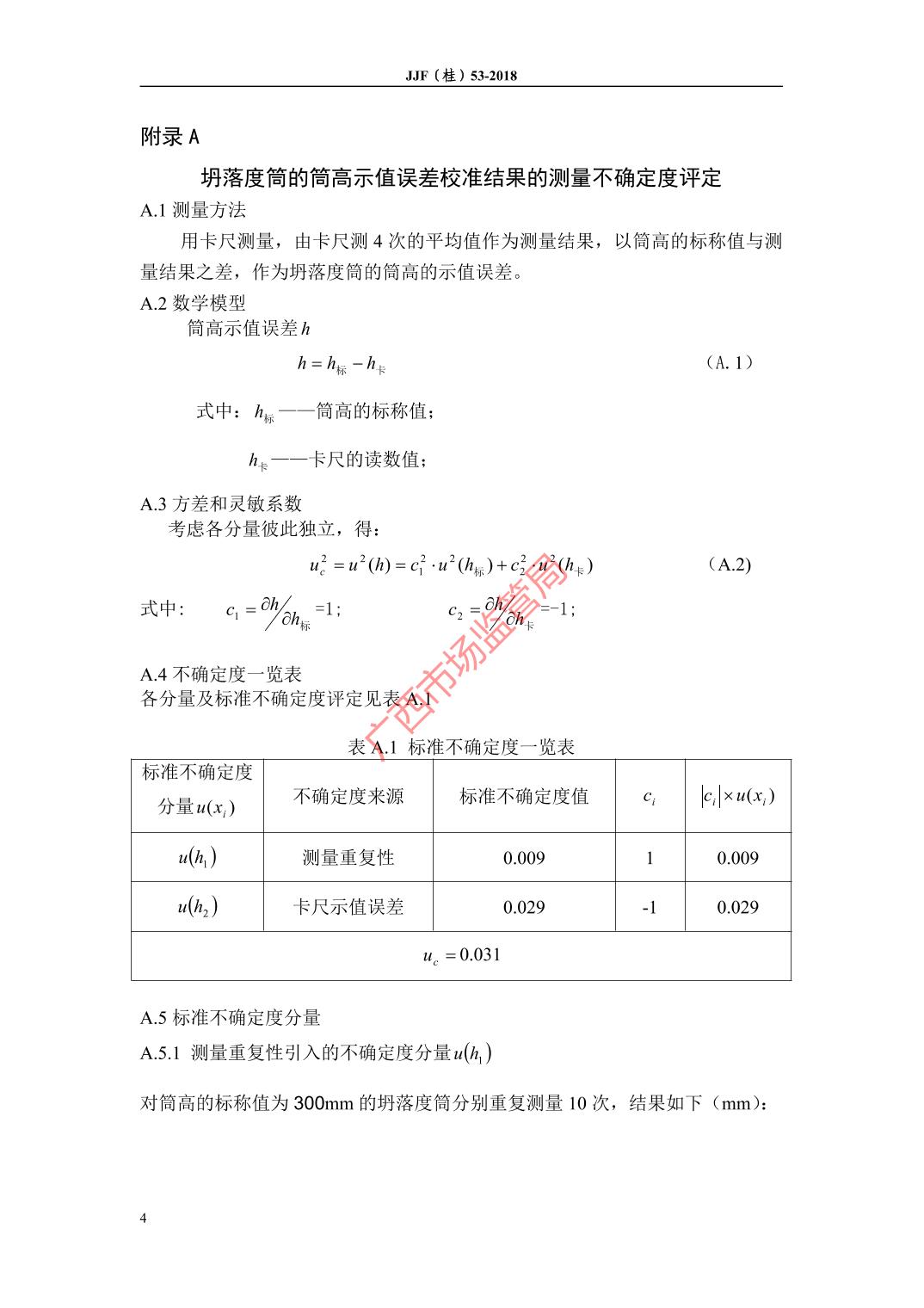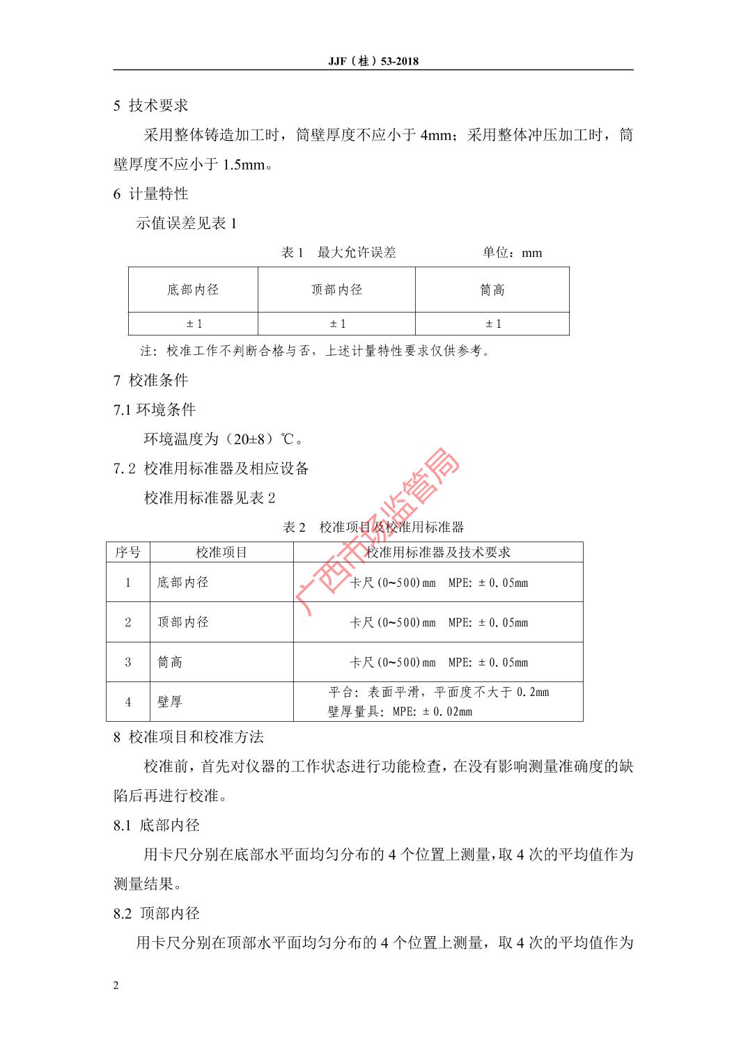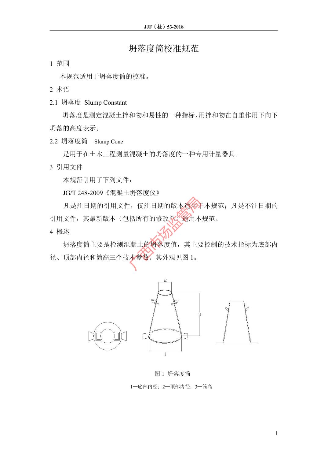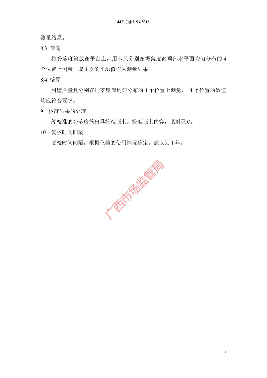 JJF(桂)53-2018坍落度筒校准规范