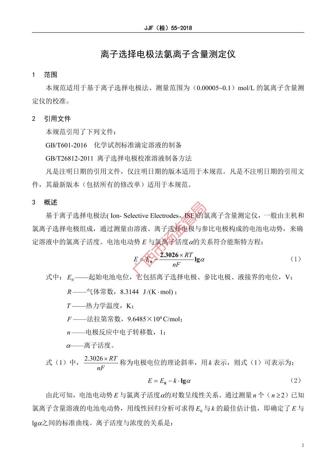 JJF(桂)55-2018离子选择电极法氯离子含量测定仪校准规范.pdf