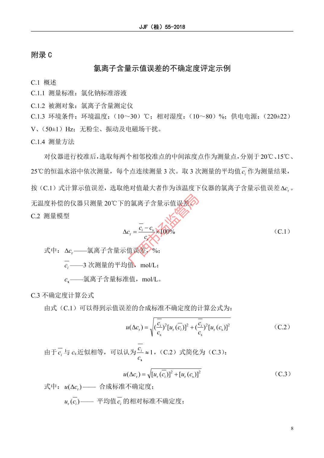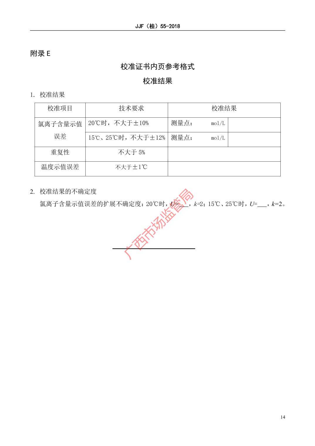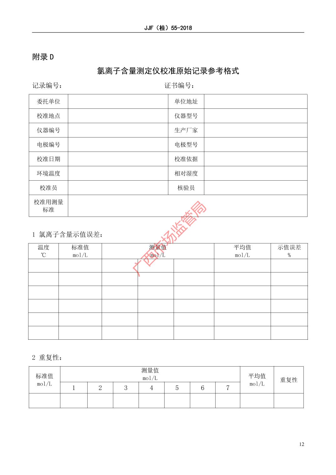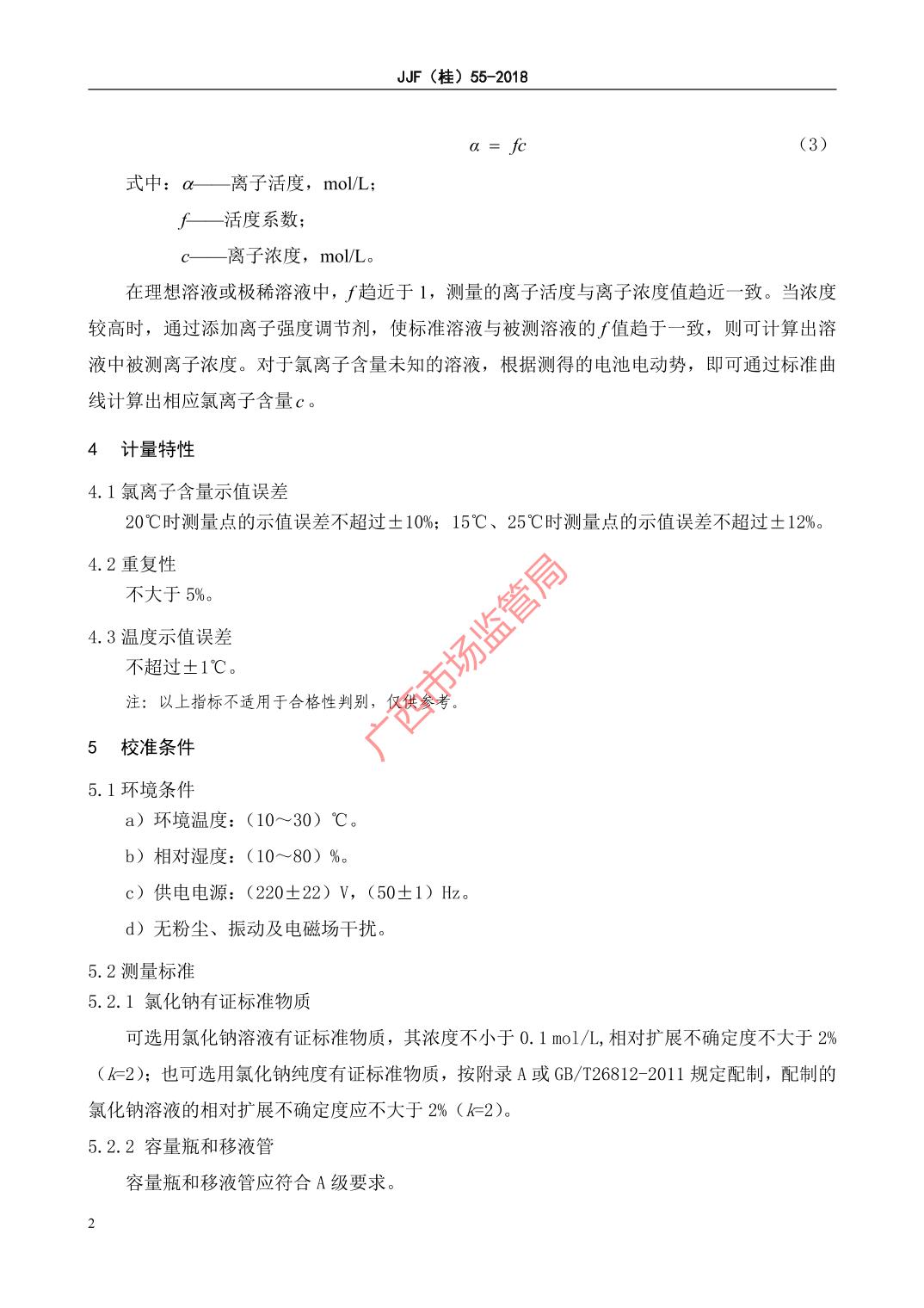 JJF(桂)55-2018离子选择电极法氯离子含量测定仪校准规范