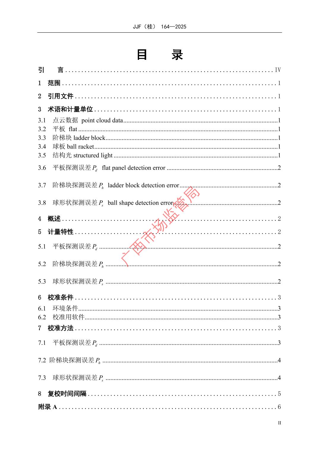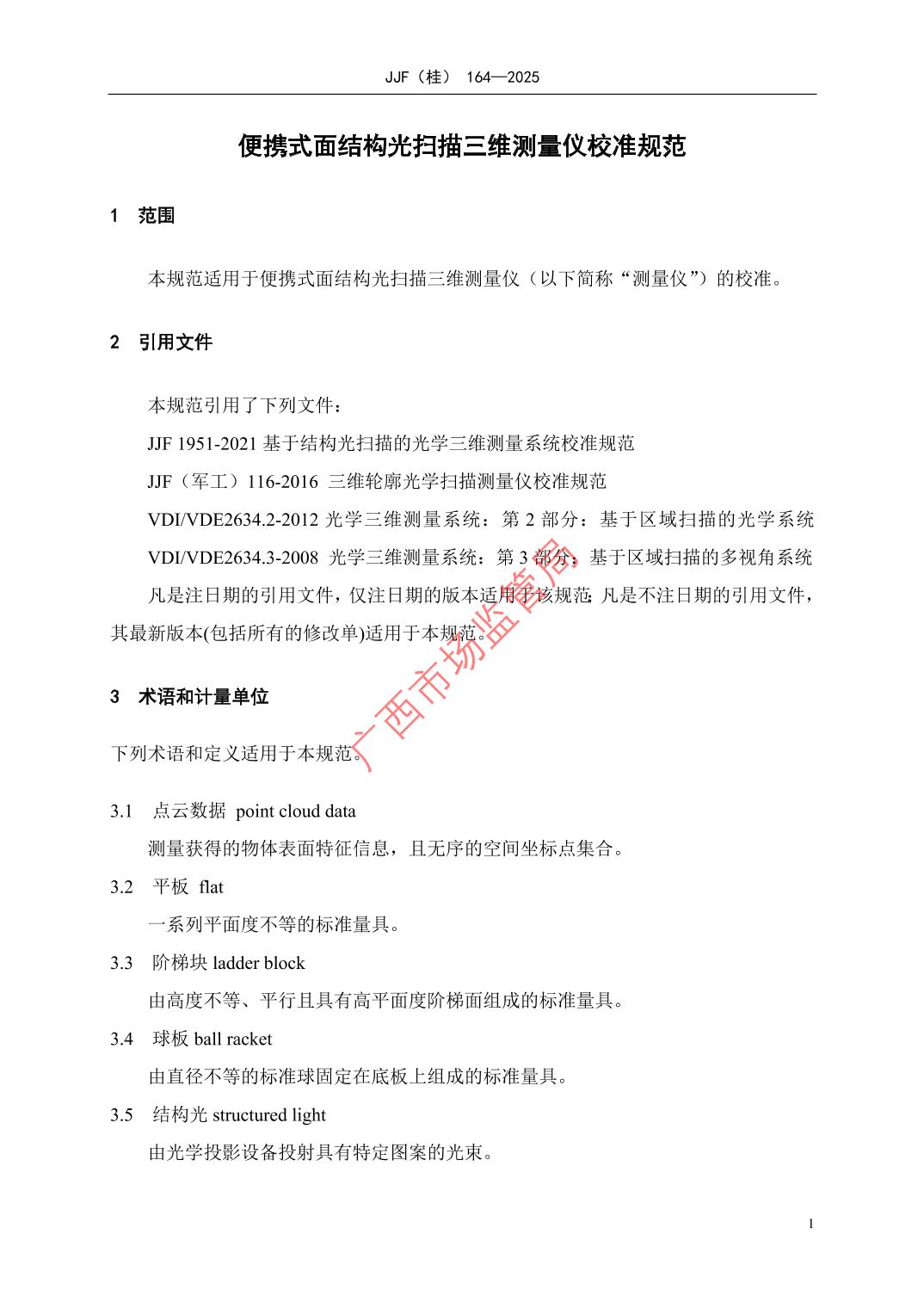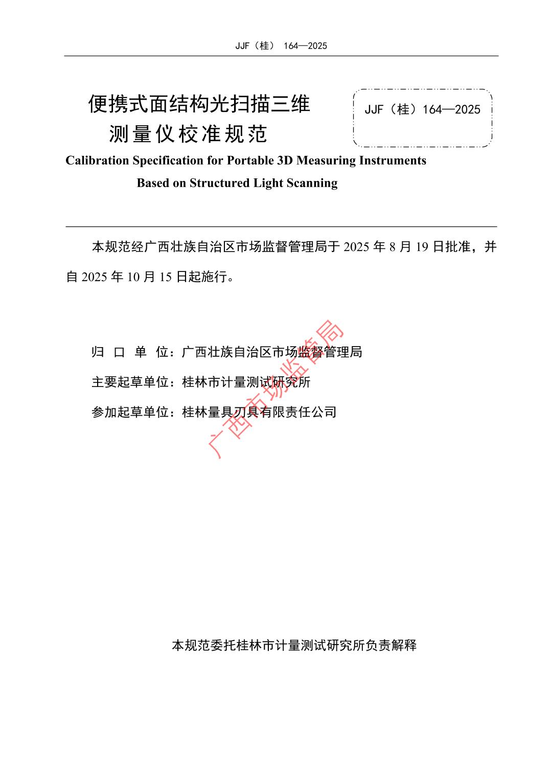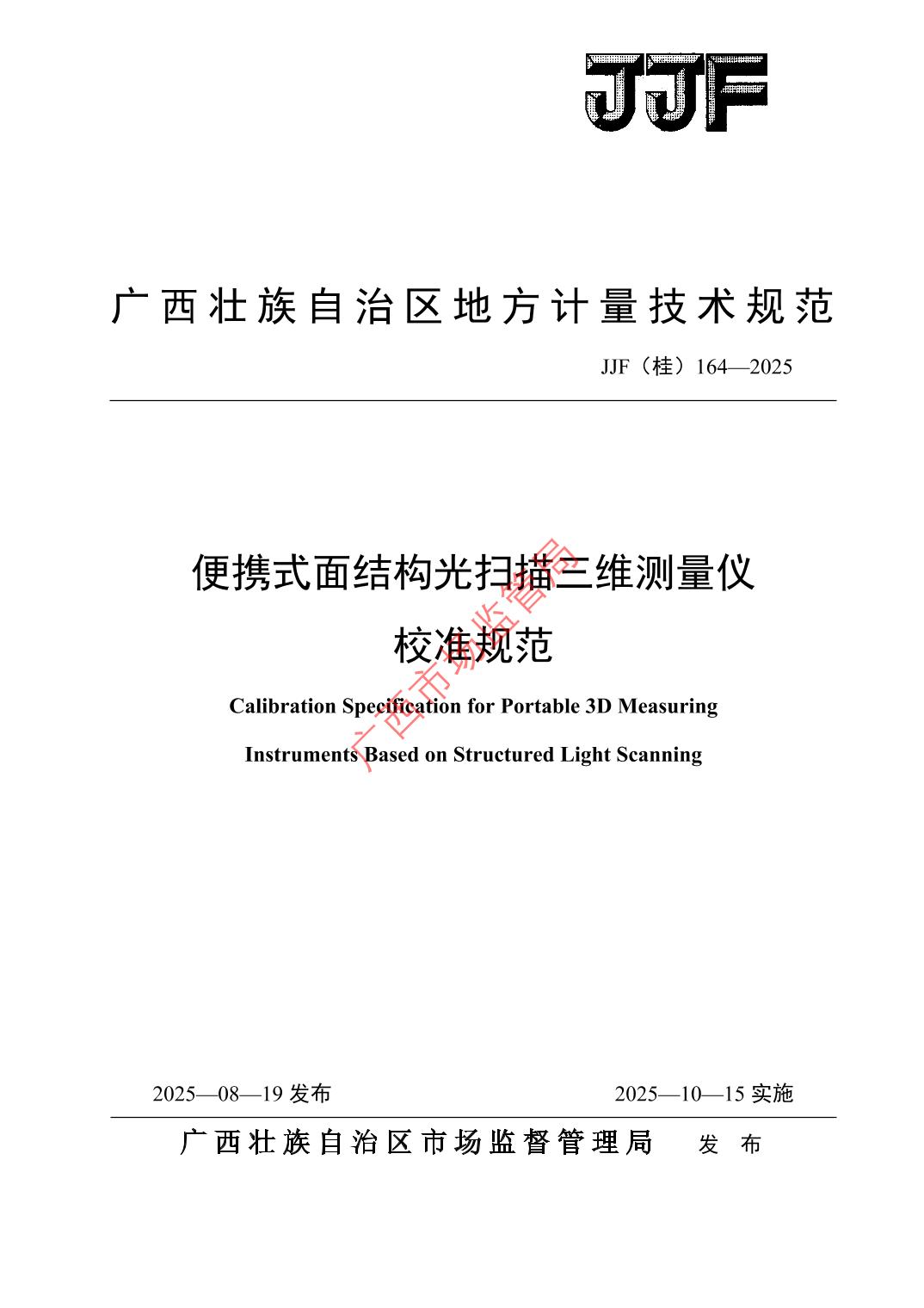 JJF(桂)164-2025便携式面结构光扫描三维测量仪校准规范