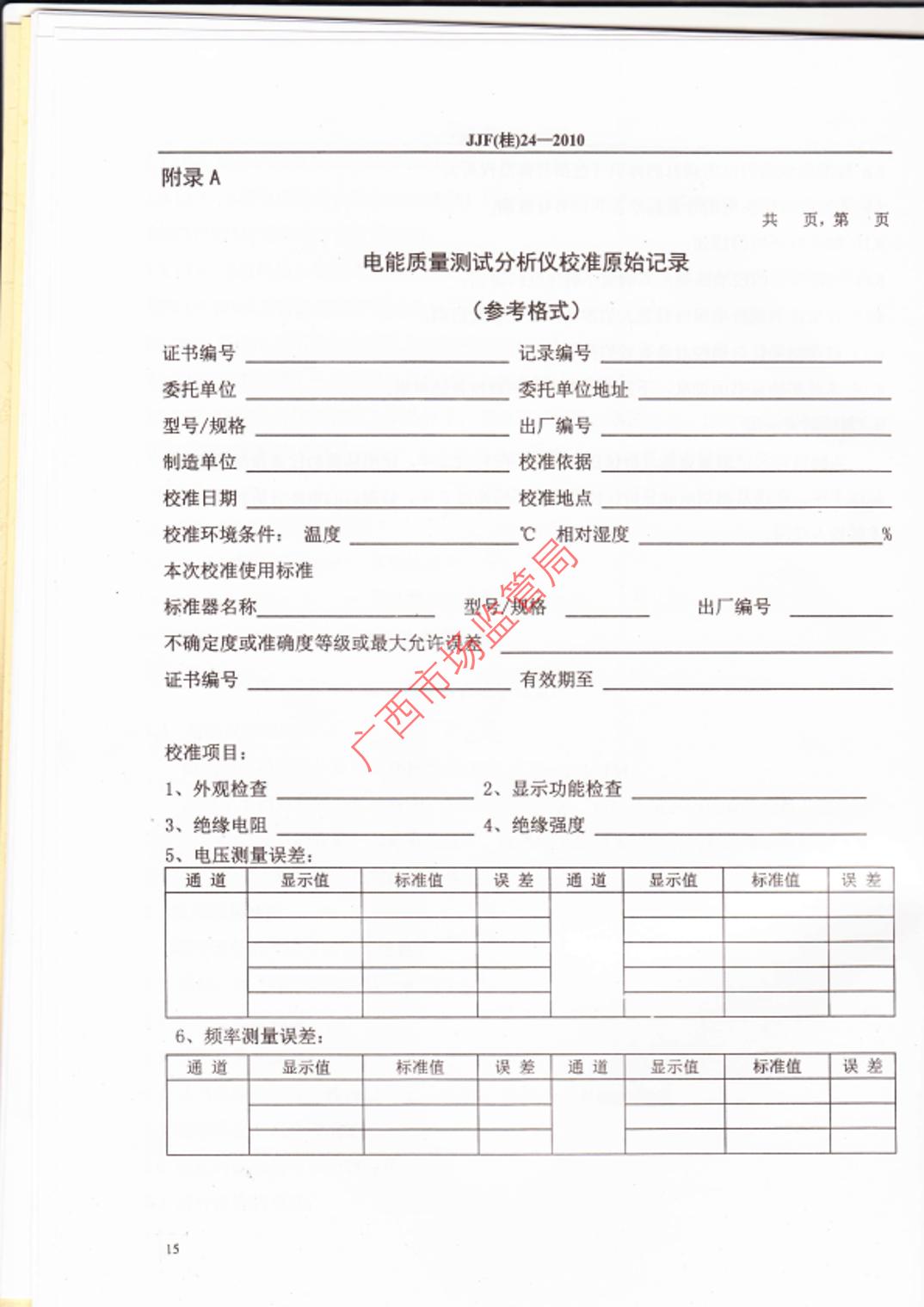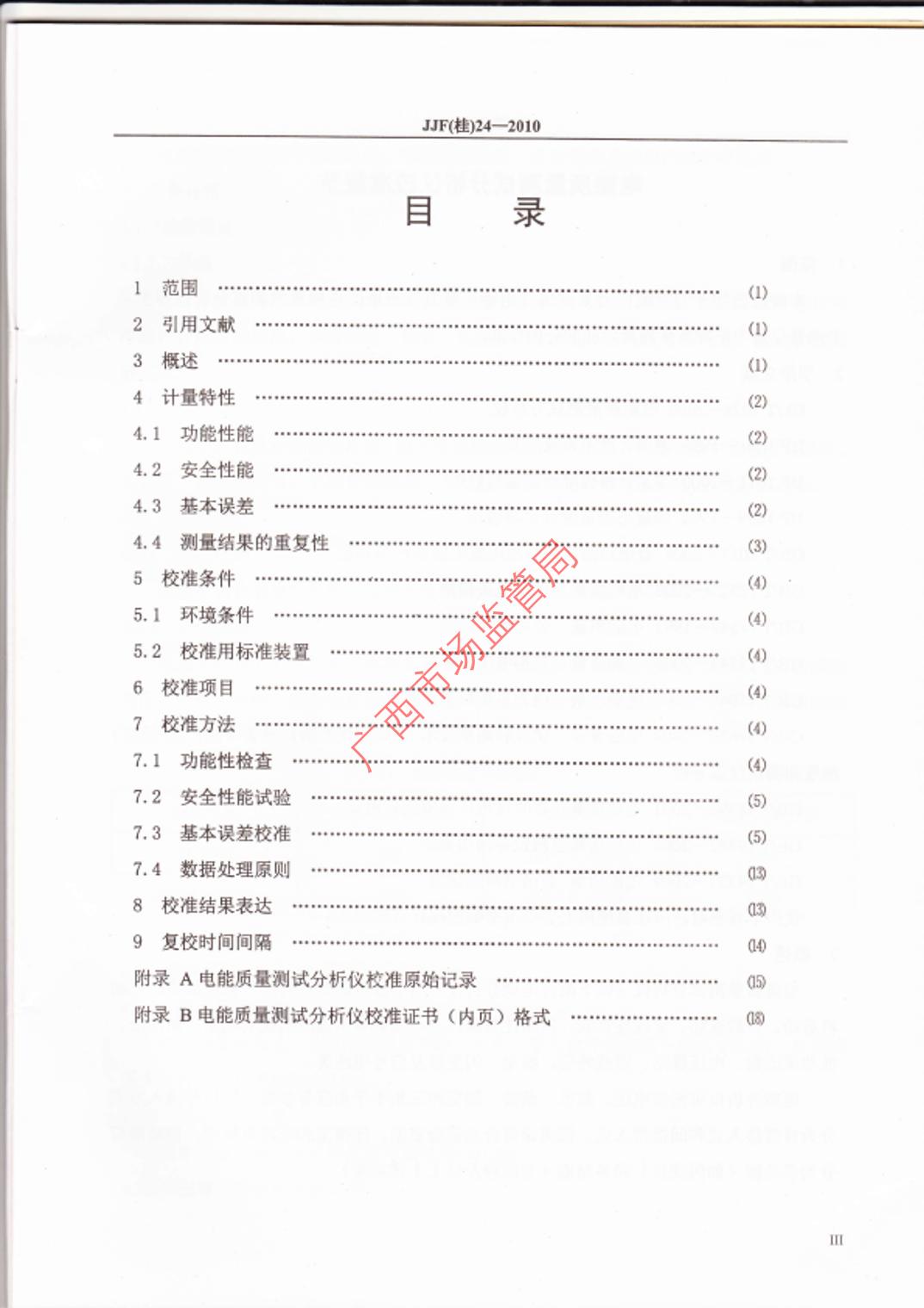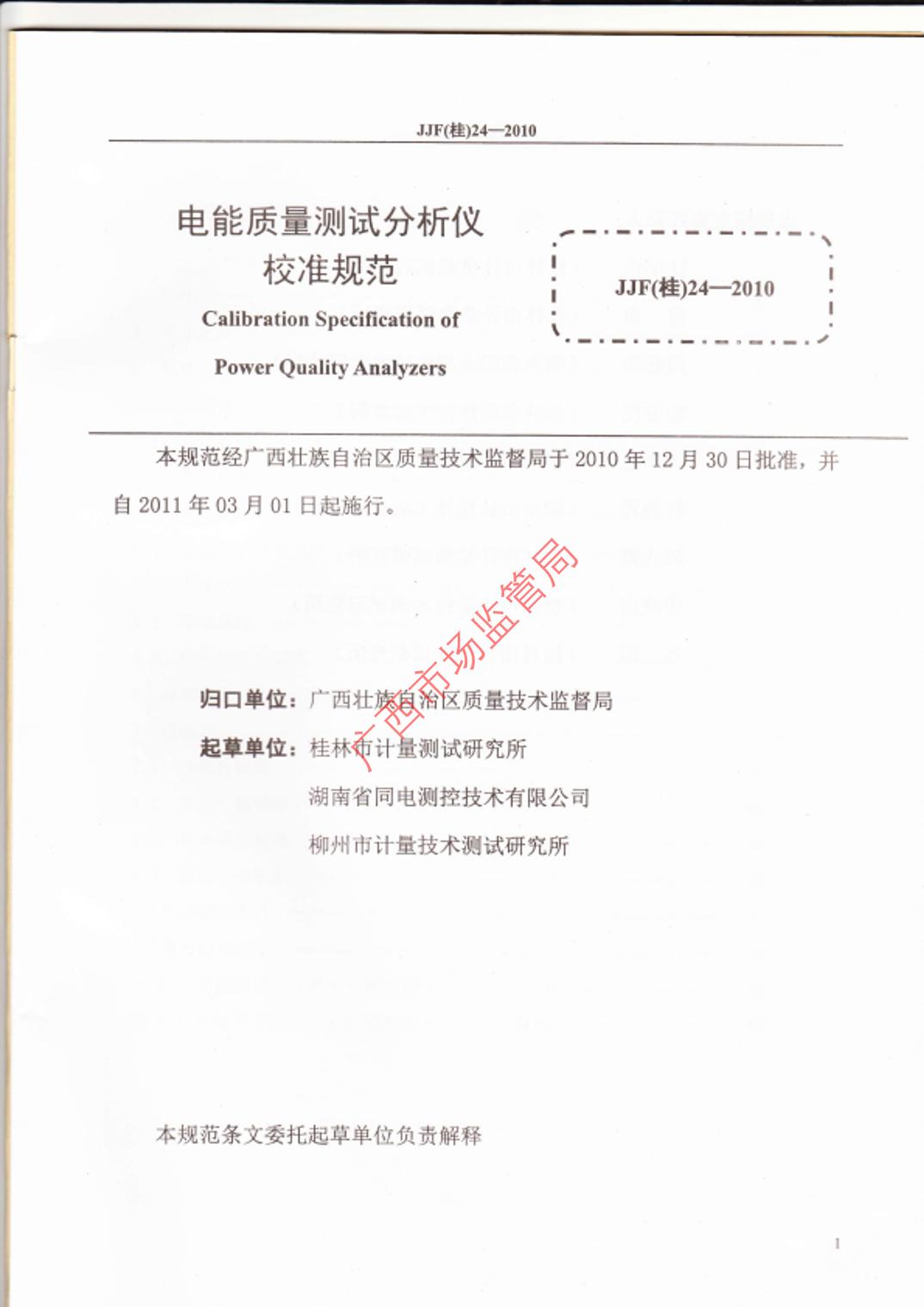JJF(桂)24-2010电能质量测试分析仪校准规范