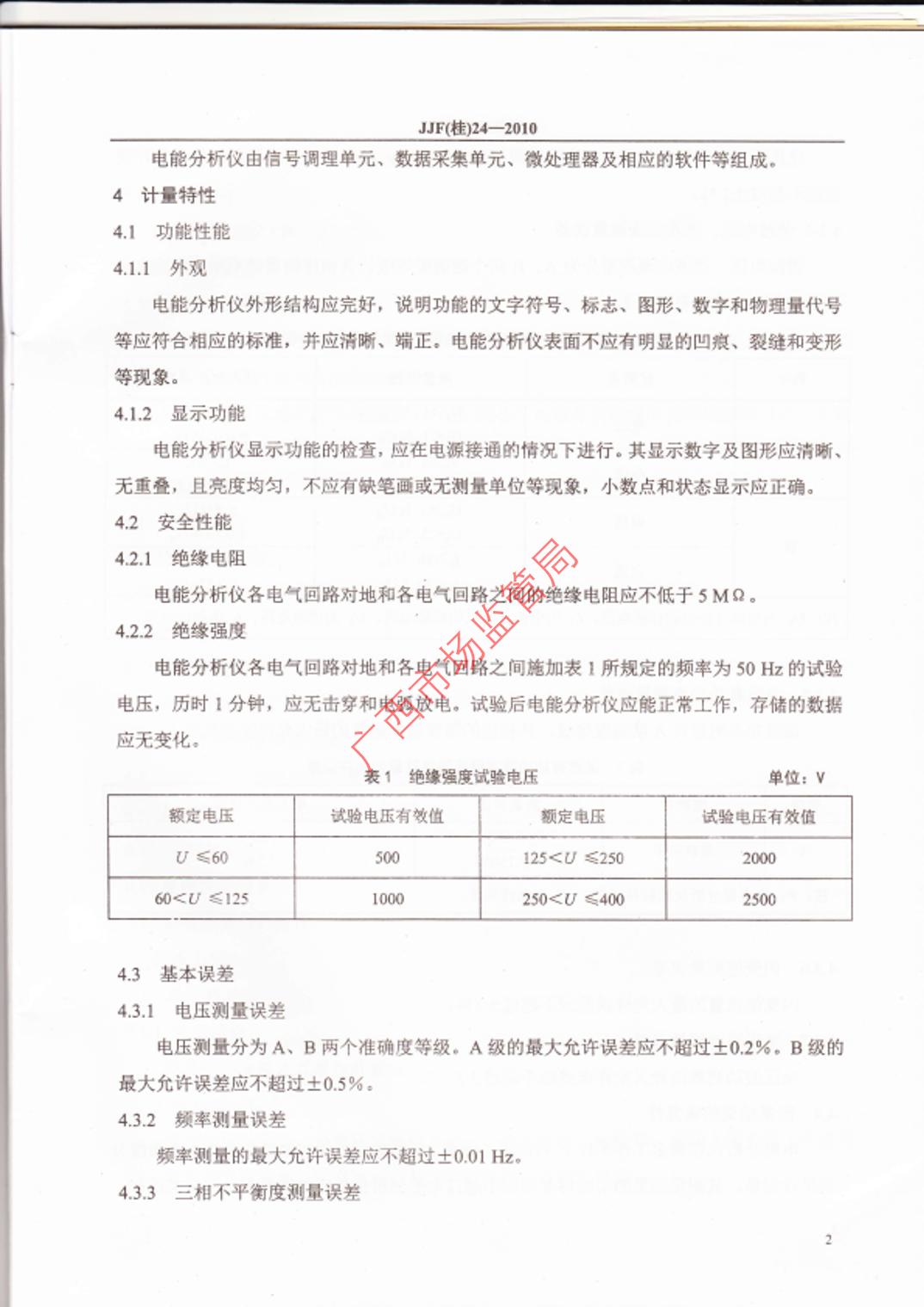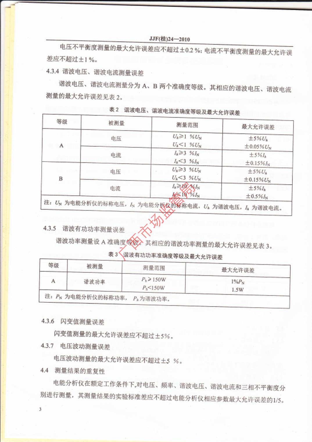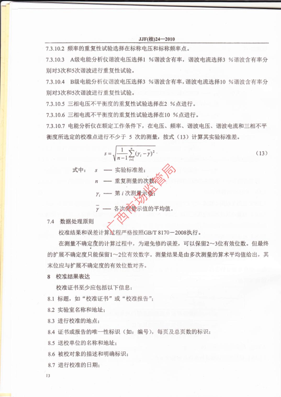 JJF(桂)24-2010电能质量测试分析仪校准规范