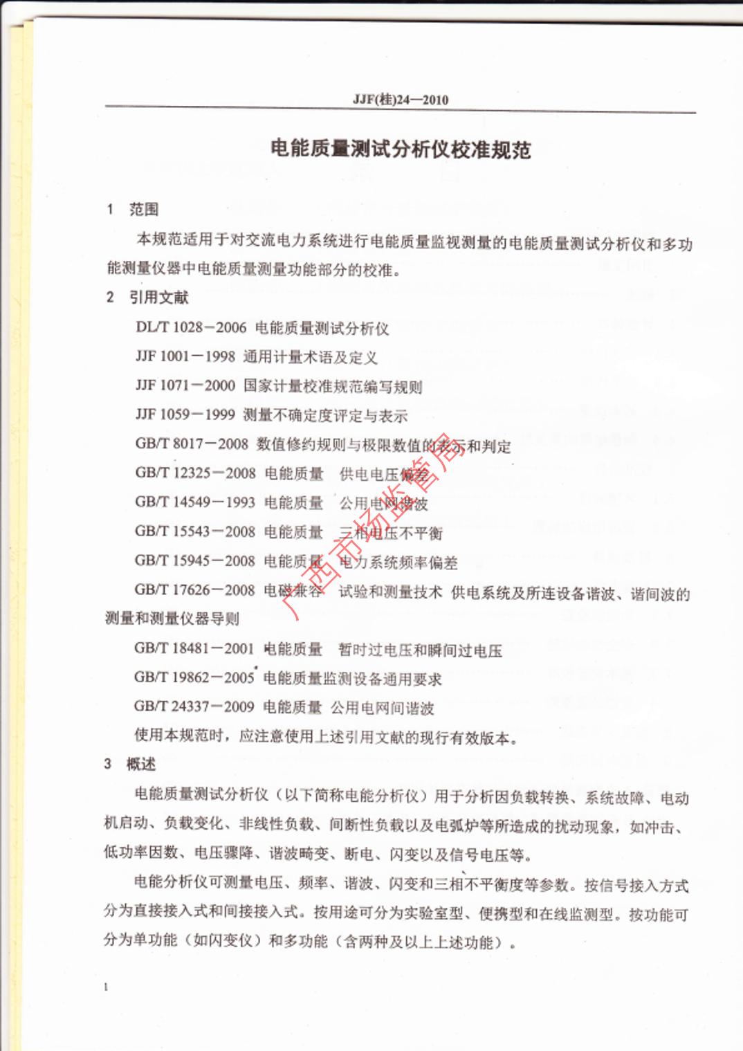 JJF(桂)24—2010 电能质量测试分析仪校准规范.pdf
