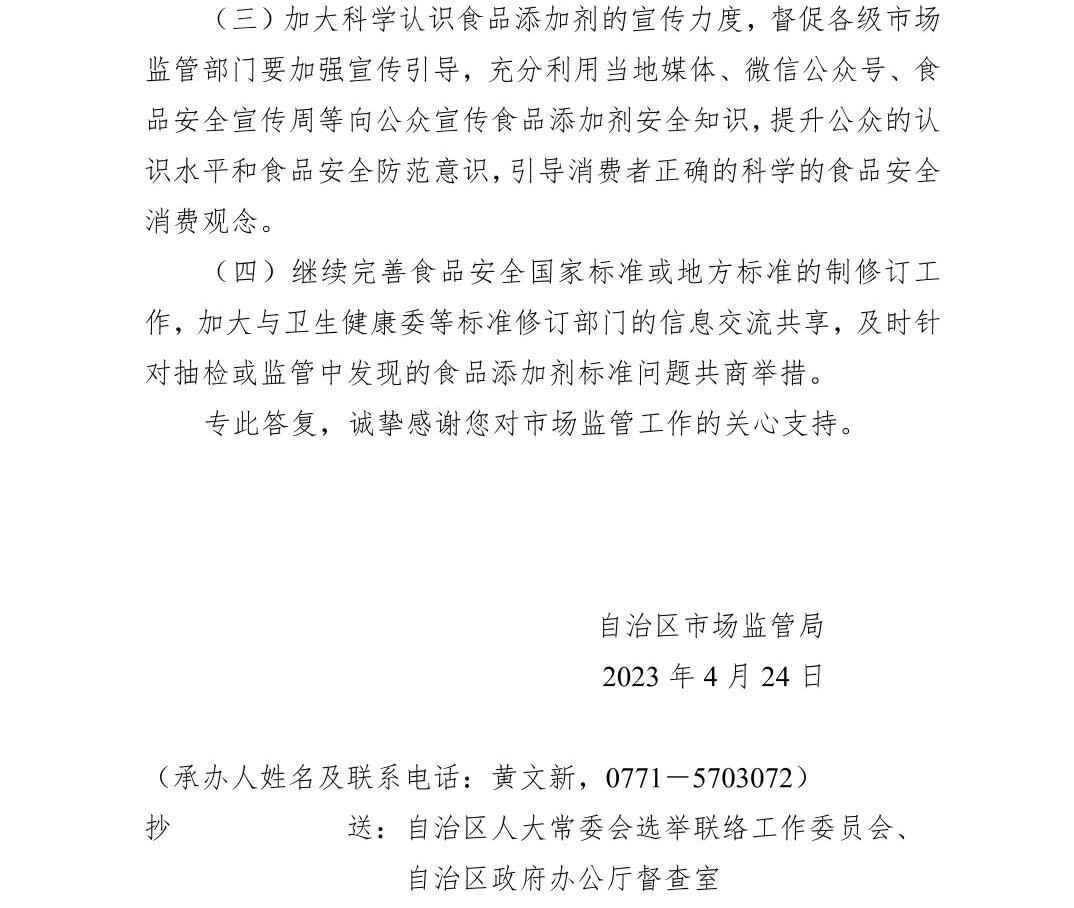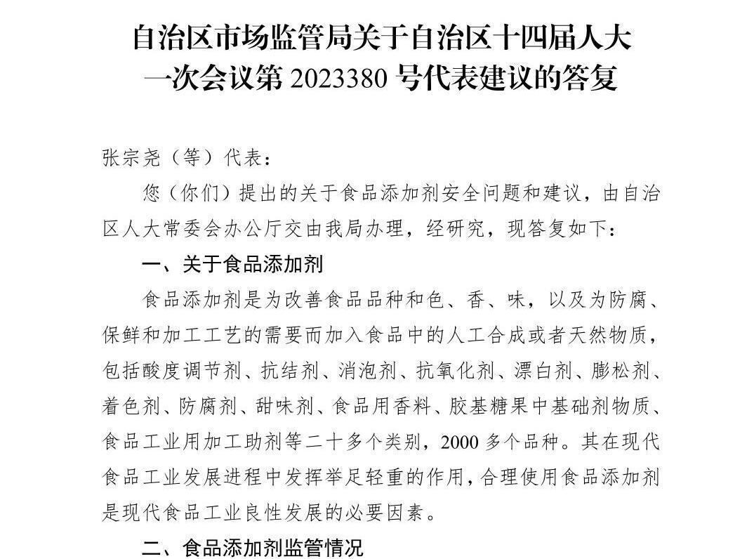 自治区市场监管局关于自治区十四届人大一次会议第2023380号代表建议的答复