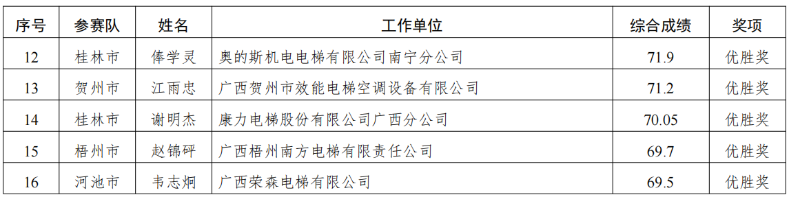 附件:2023年广西电梯行业职业技能竞赛获奖名单